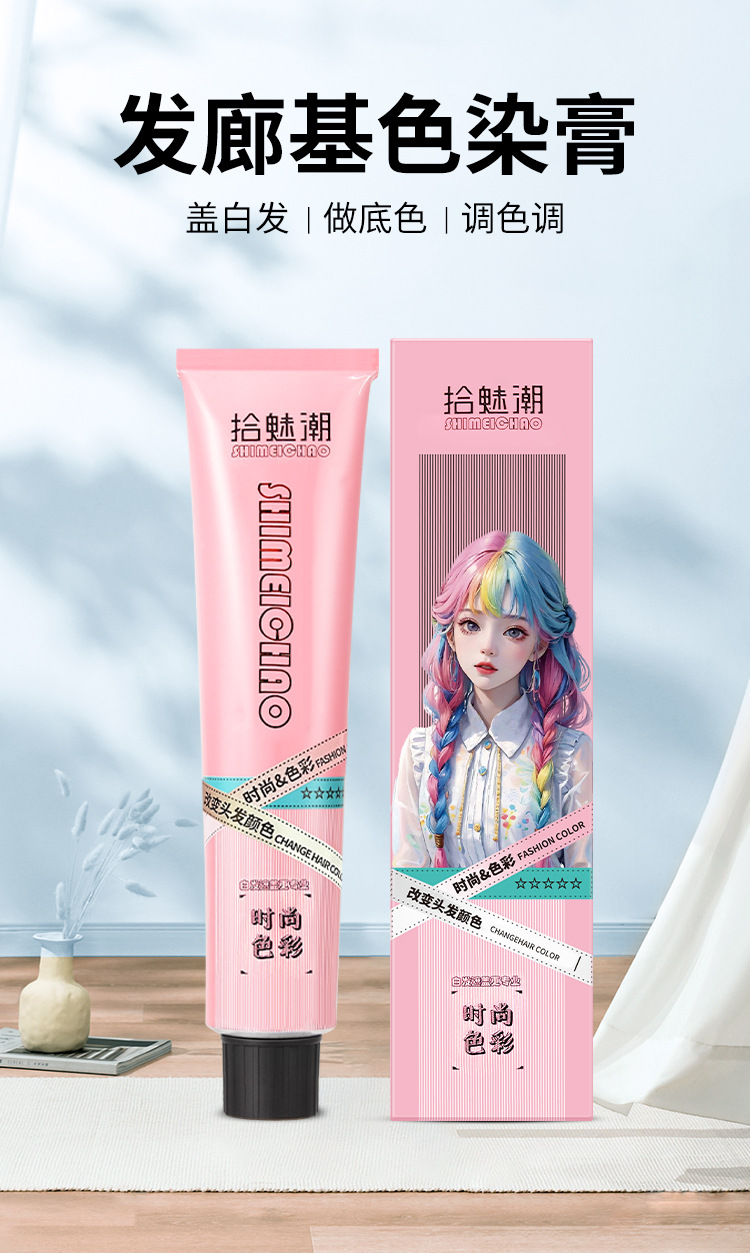 Shimei 潮染毛剤、漂白なし、理髪店の女性と男性用の特別な染毛剤、白髪カバー、マルチセクションカラー、ピンクグレー卸売