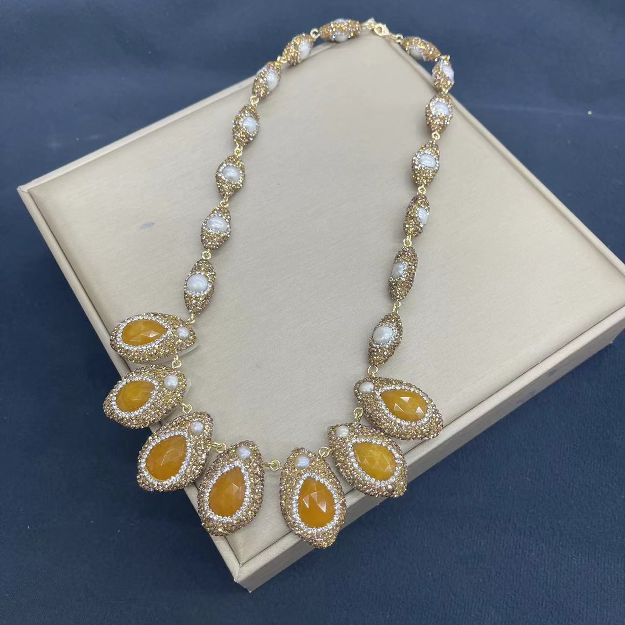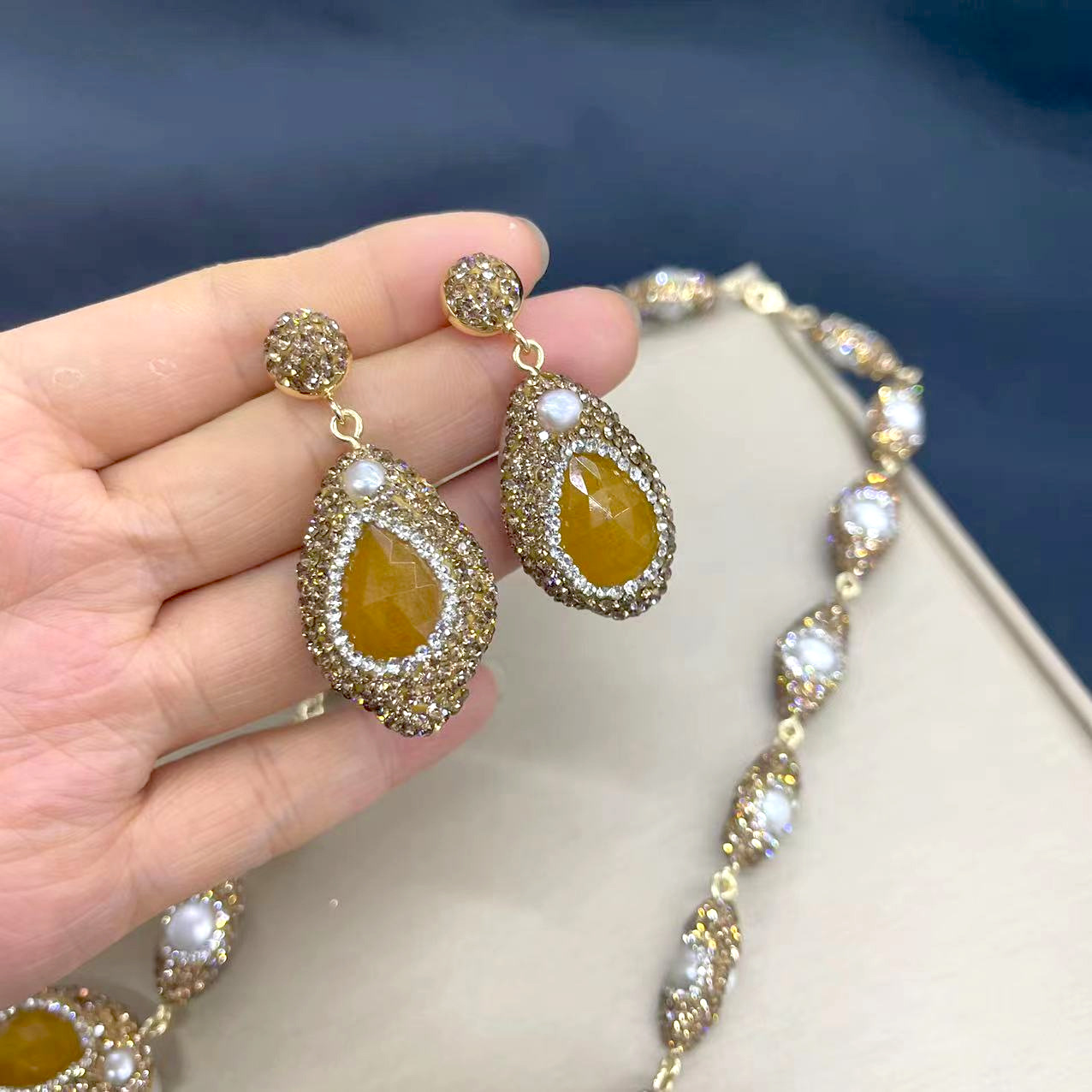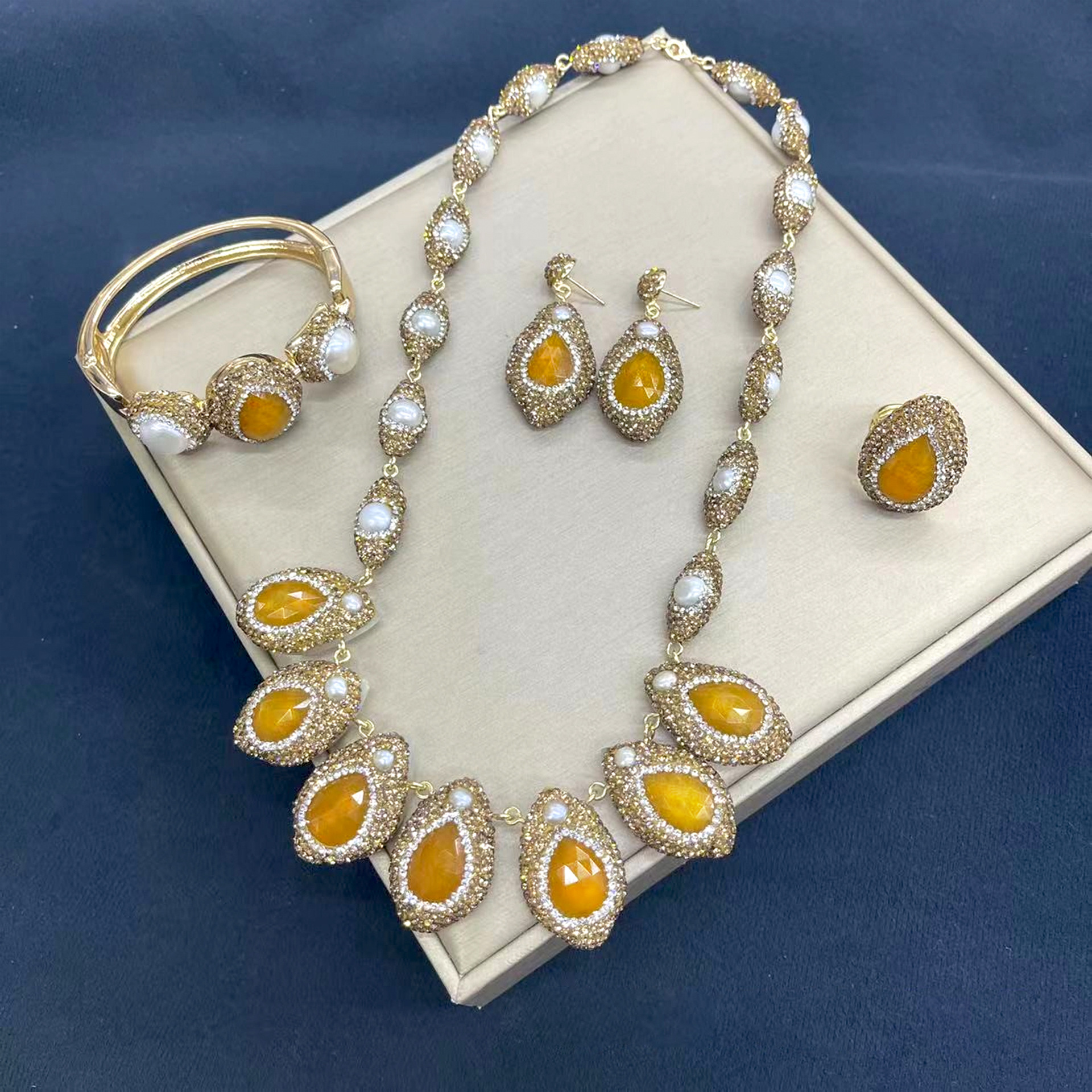 バロック真珠碧璽ネックレス指輪イヤリングセット淡水高級感チェコドリルセーターチェーンペンダントアクセサリー