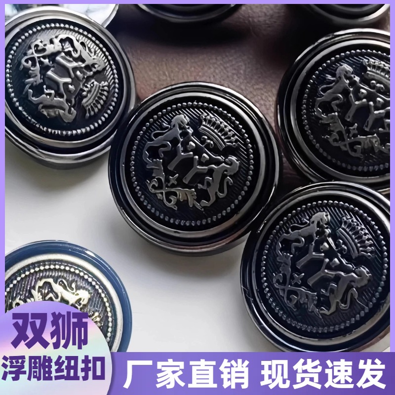 双狮浮雕仿金属复古塑料纽扣男女衣服西装毛衣校园风时尚百搭纽扣