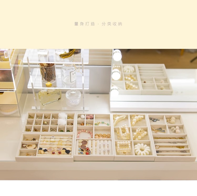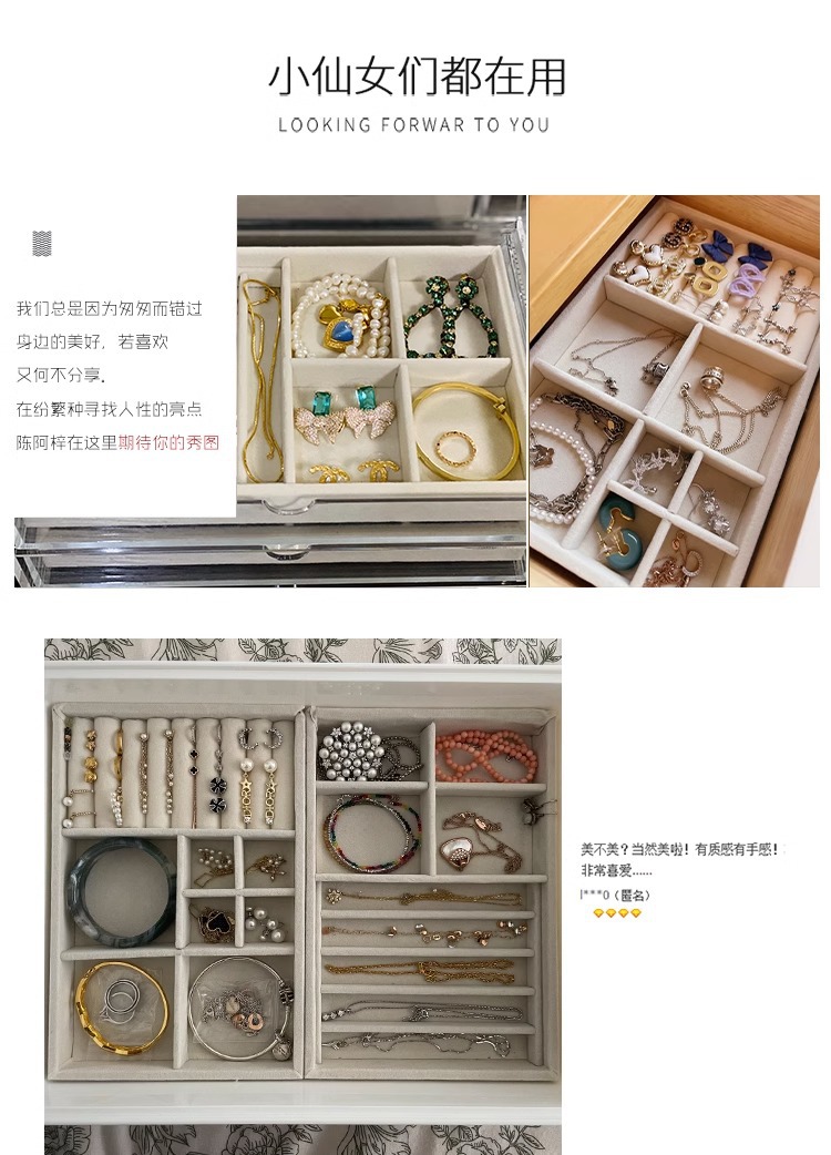 ジュエリー収納ケース酸化防止イヤリングピアスネックレスベルベットアクリル高級精致アクセサリーケース神器
