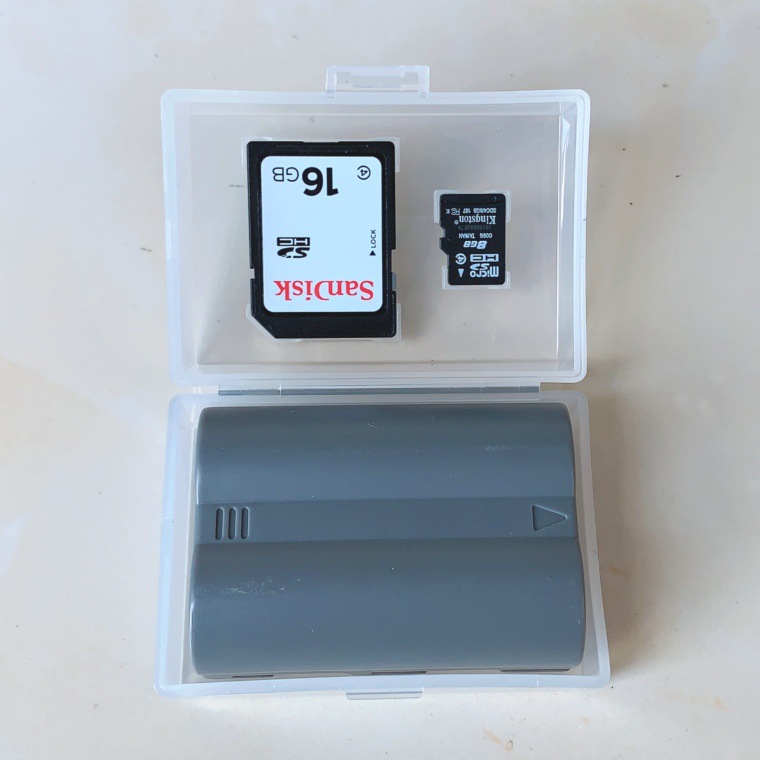 カードスロット付き大型リチウム電池ケースに各種一眼レフカメラ電池を入れて保護収納防傷防湿ケース