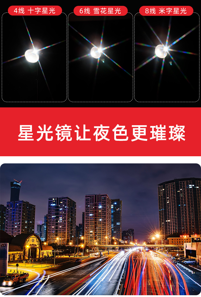 Cuely星光鏡6線星芒鏡52 55 58mm夜景灯光マイクロ一眼レフカメラフィルター