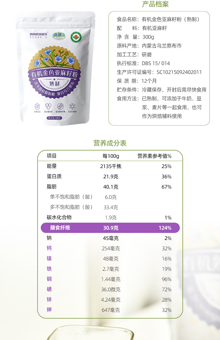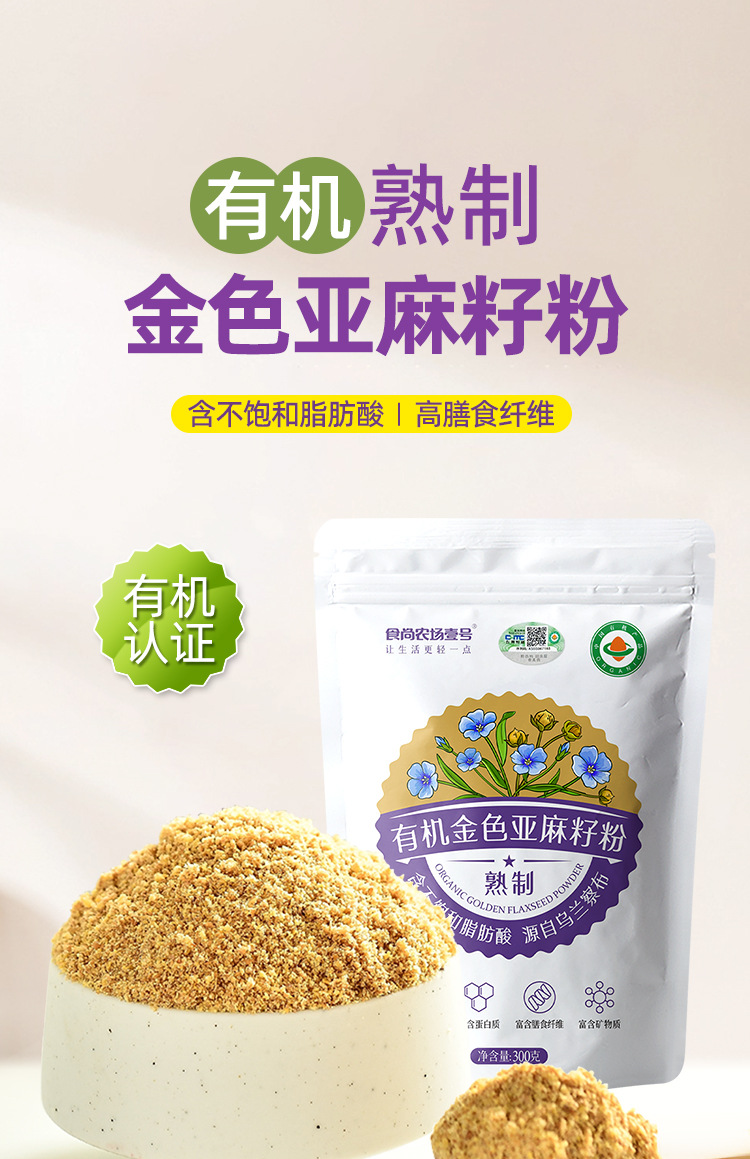 有機認証亜麻種子粉胡麻種子仁黄金色食物繊維辟谷熟製インスタント食品300g