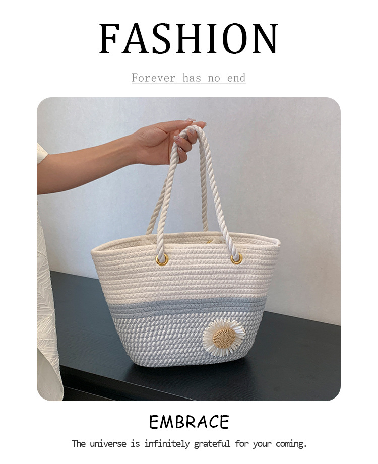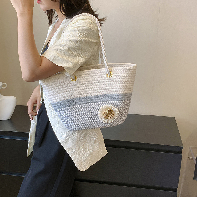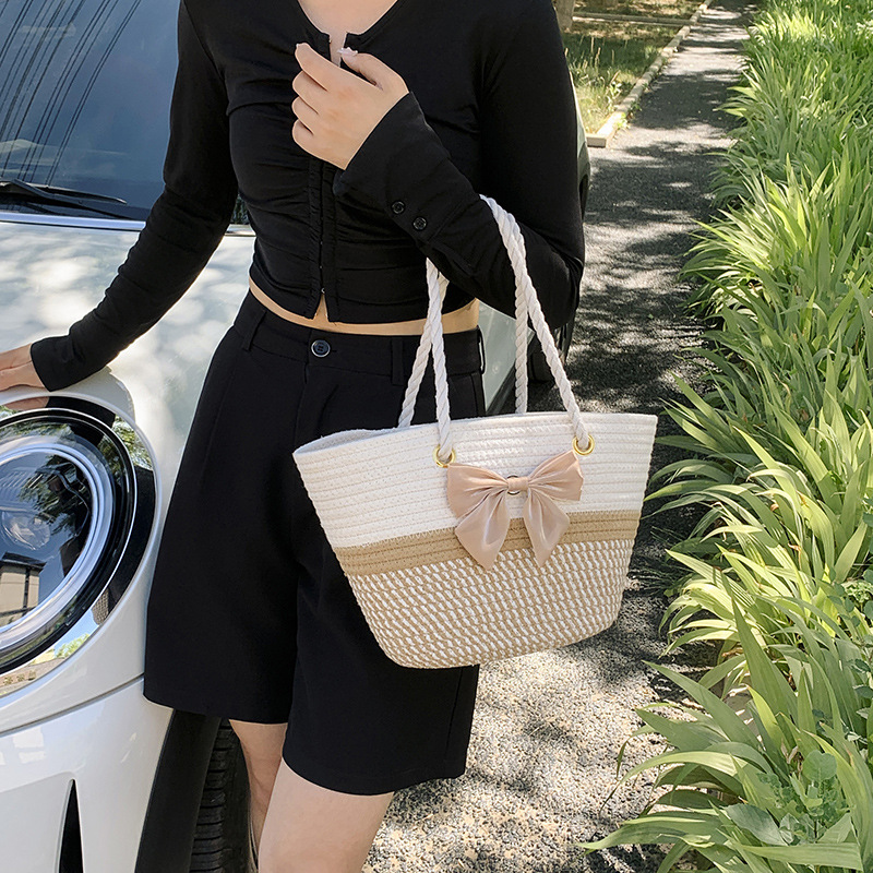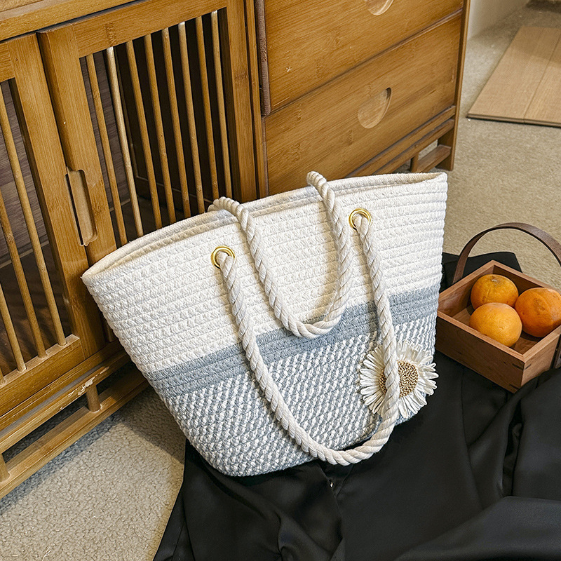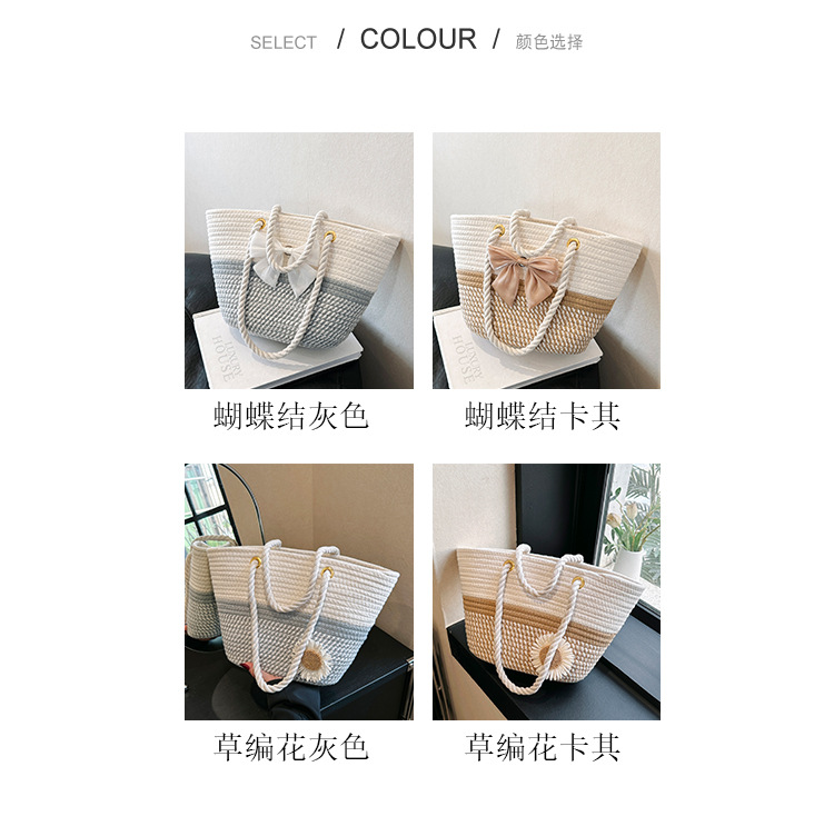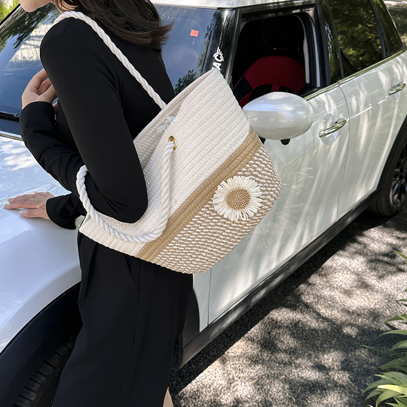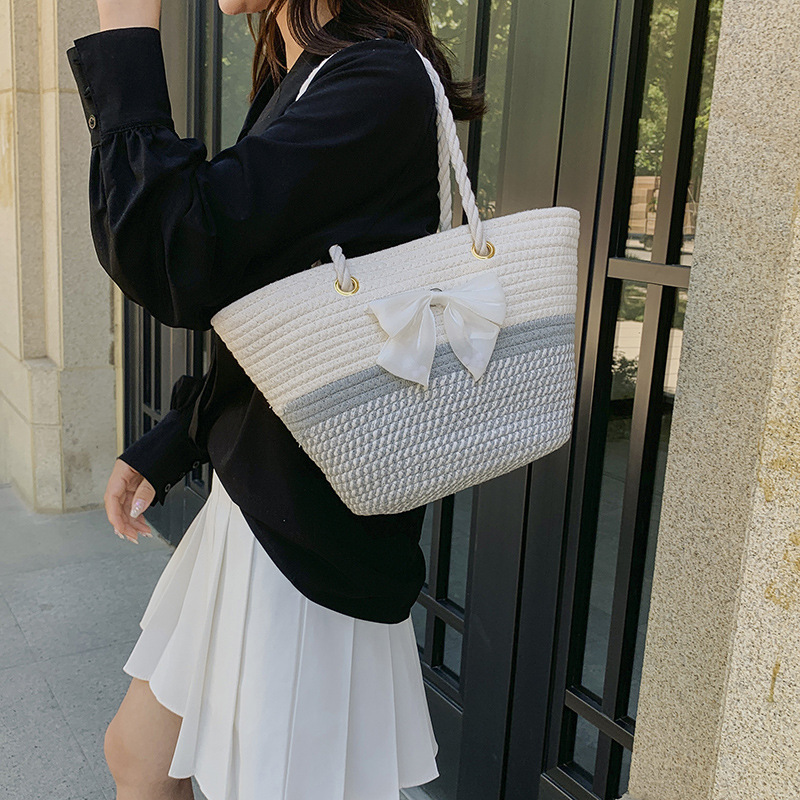 夏の洋気編みバッグ女性2023新型ファッション片手に麻縄バケツを持ってレジャー潮ビーチバッグを包む