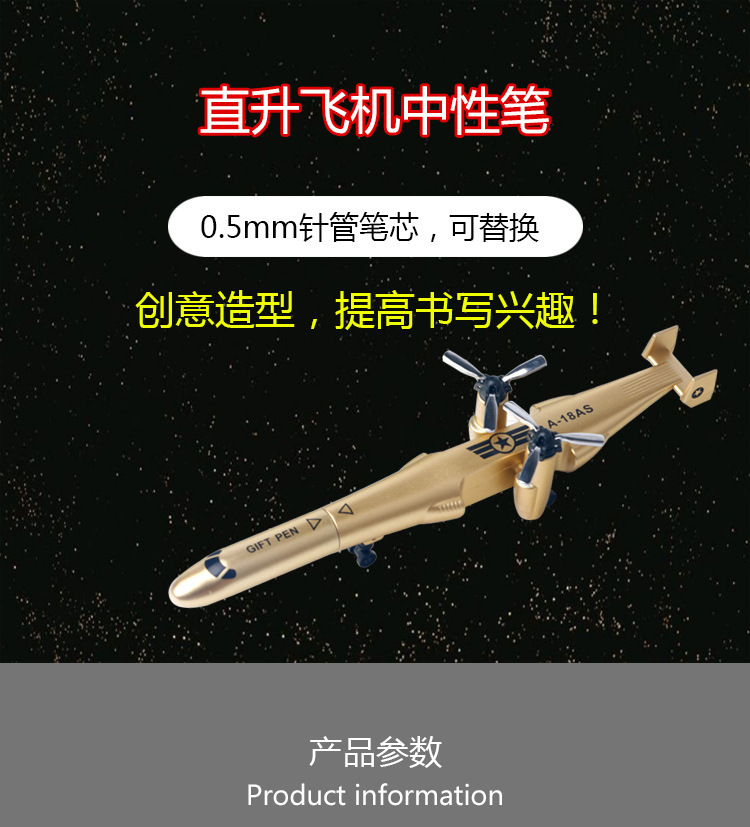 新型創意飛行機中性ペン軍事武器戦闘機特戦ヘリコプターペン学生水筆文房具