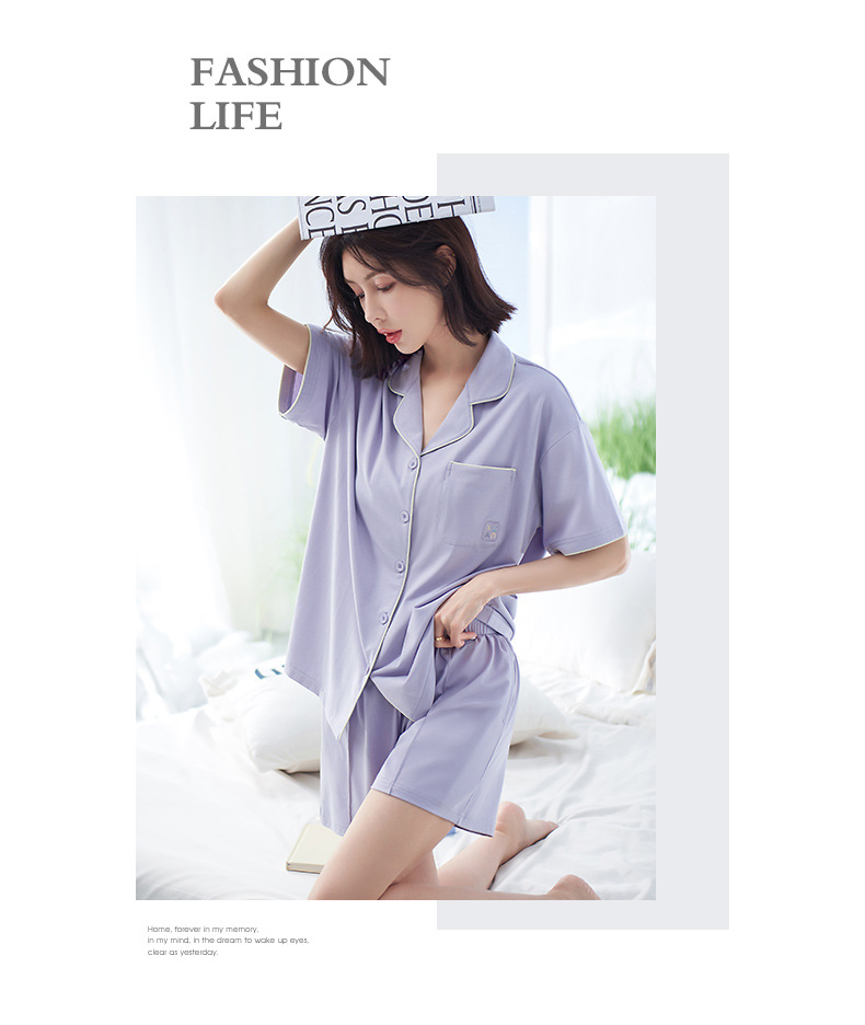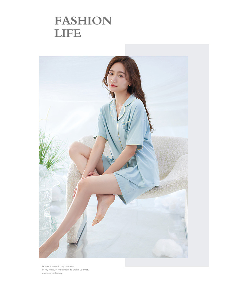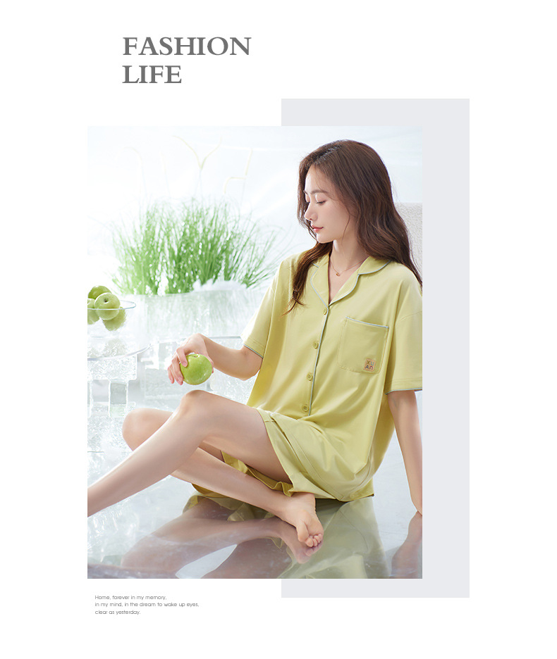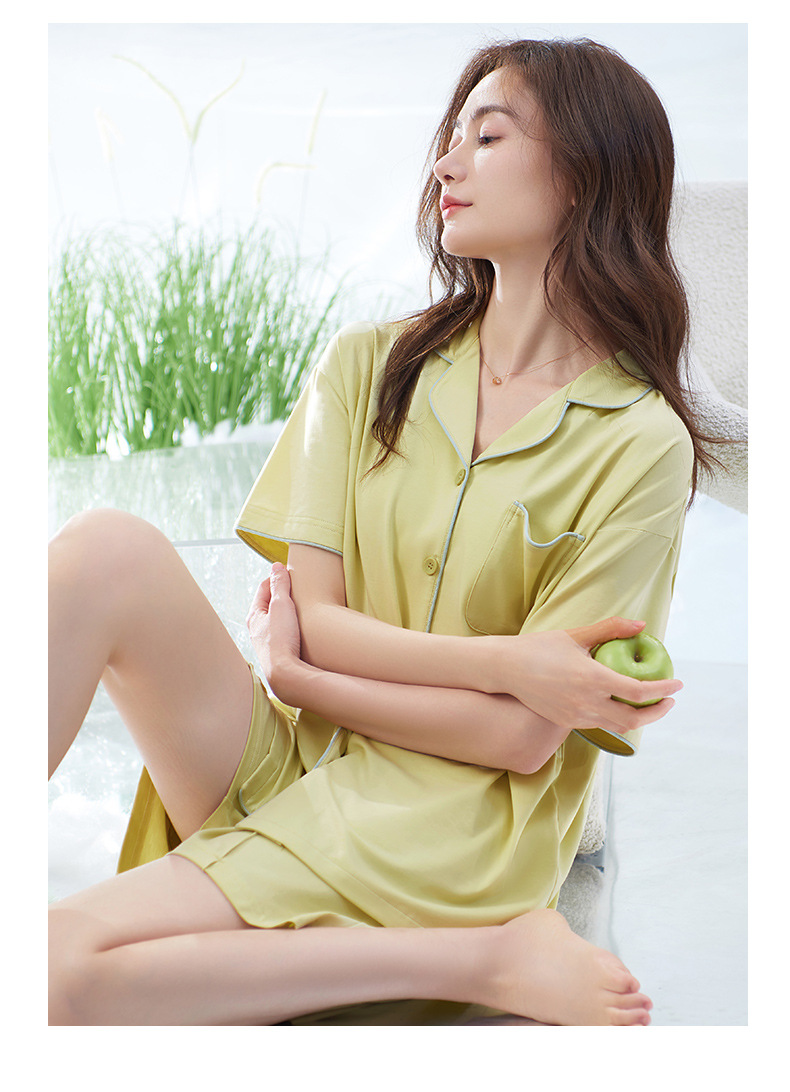 軒の美しい夏の部屋の服の女性の襟のカーディガンのvネックの半袖の半ズボンの莫綿はフレームの女性の簡単でカジュアルなパジャマを引っ張ります。