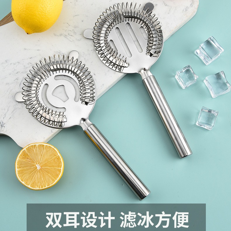 メーカー卸売りカクテルは氷を隔てています。ステンレスの濾過器バーは氷を隔てています。