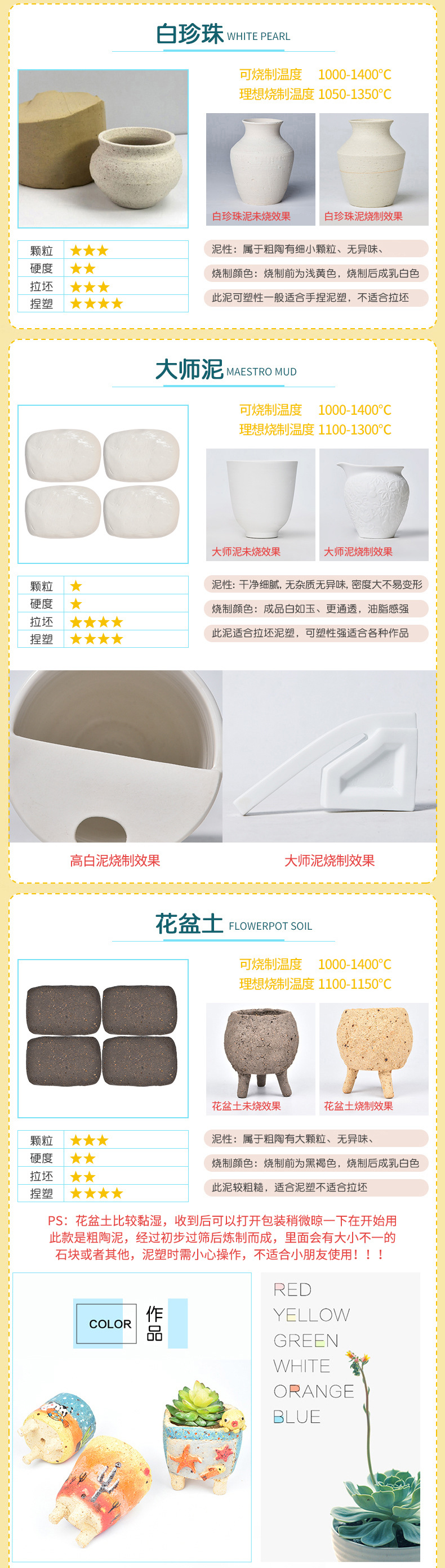 水流れ星陶芸陶芸泥陶芸泥泥泥陶磁泥黄陶高白中白陶泥1斤ばら売り