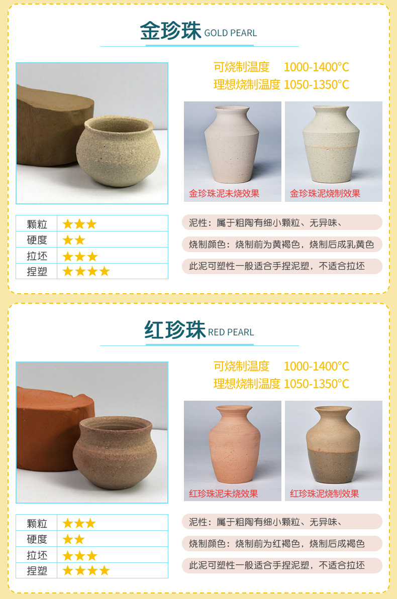 普通の泥 500g/袋,中白泥 500g/袋,ハイホワイトクレイ 500g/袋,赤茶精製陶土 500g/袋【強可塑性】,灰色粘土 500g/袋 [強い可塑性],紫砂泥 500g/袋,肌色泥 500g/袋,ゴールデンパール 500g/袋【粒状】,ホワイトパール 500g/袋【粒状】,レッドパール 500g/袋【粒状】,スノーマッド 500g/袋【デリケート】,赤鉄泥 500g/袋,練り花泥 500g/袋【デリケート】,黒陶器 500g/袋,極白泥 500g/袋【デリケート】,マスターマッド 500g/袋【デリケート】,メディカルピューレ 500g/袋,鉄砂泥 500g/袋【粒状】,白い泥 500g/袋