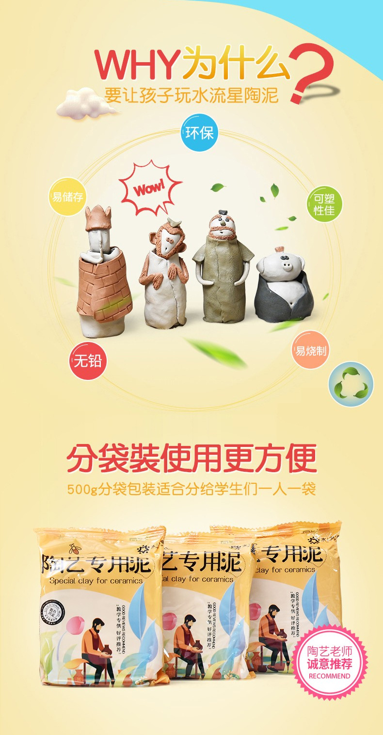 水流れ星軟陶泥陶土学生DIY粘土子供彫刻泥塑陶芸泥500g独立袋