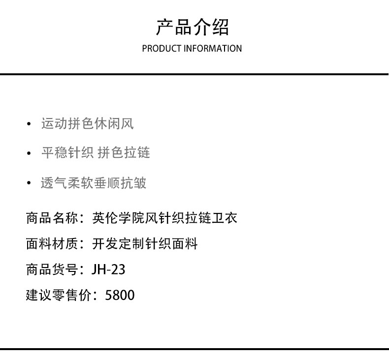 【JH-35】英倫学院風ニットジッパーメンズスウェット