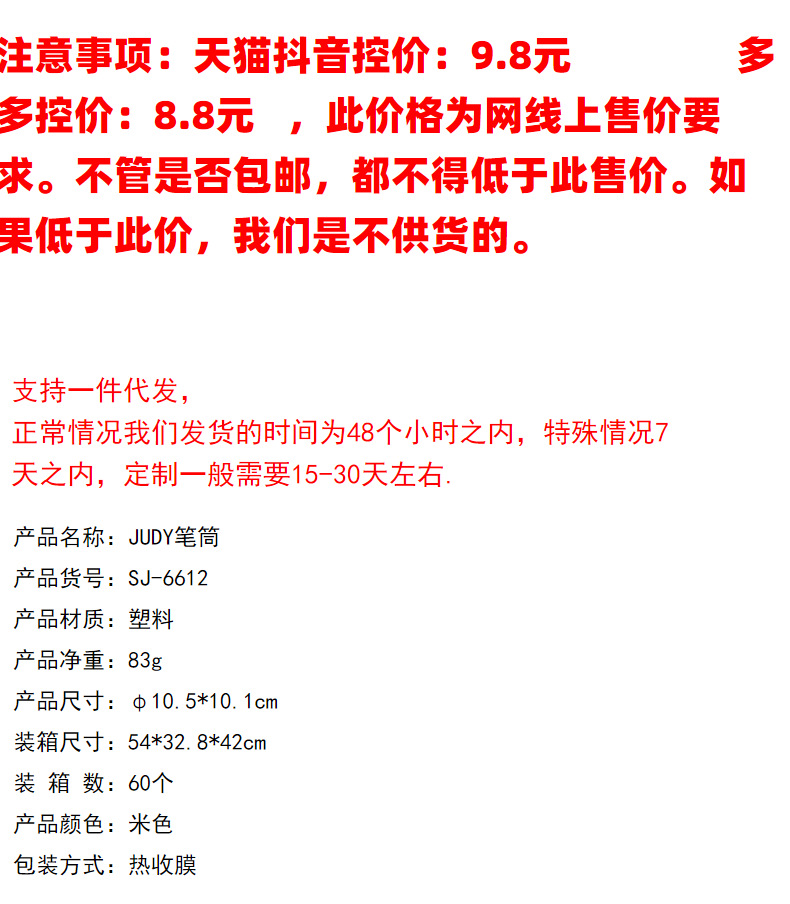 仕様 SJ-6612 judyペン立て (熱収縮フィルム包装),SJ-6612 judyペンホルダー (カートン包装)