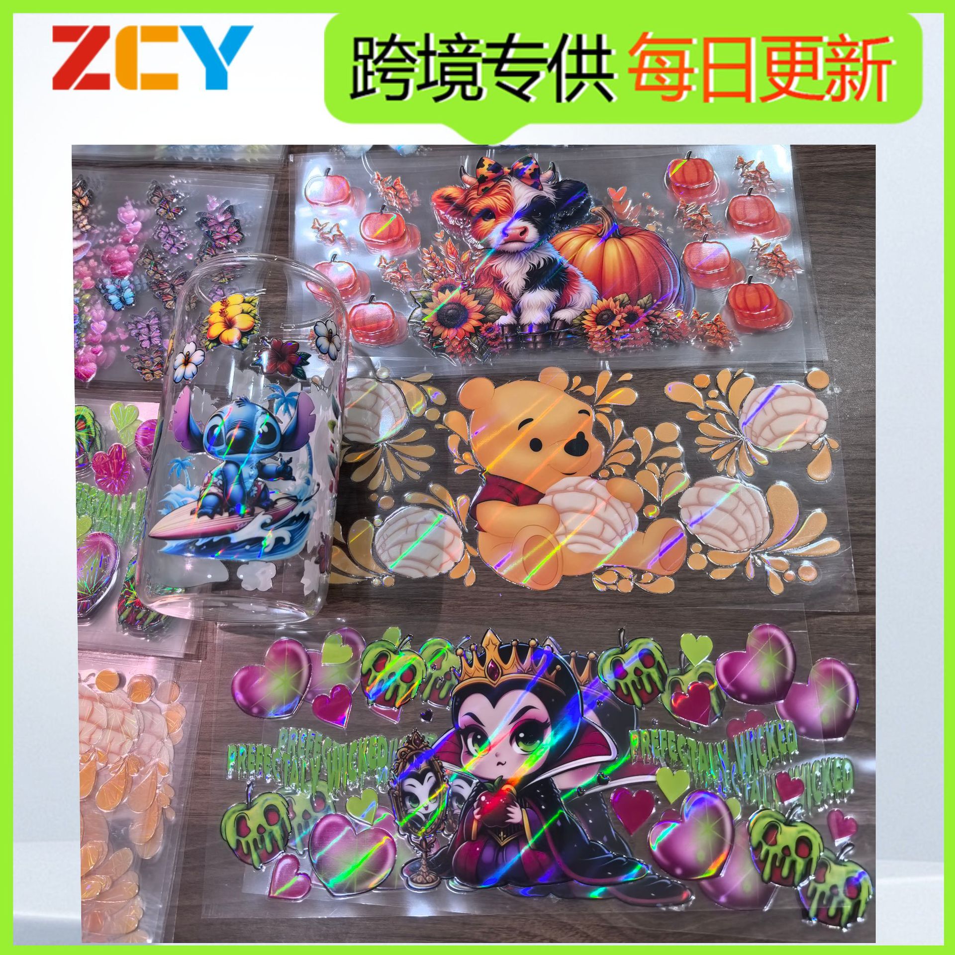 新しいクロスボーダー漫画プリント熱転写カップステッカーロゴパターン uv 転写ステッカークリスタルラベルガラスカップ用