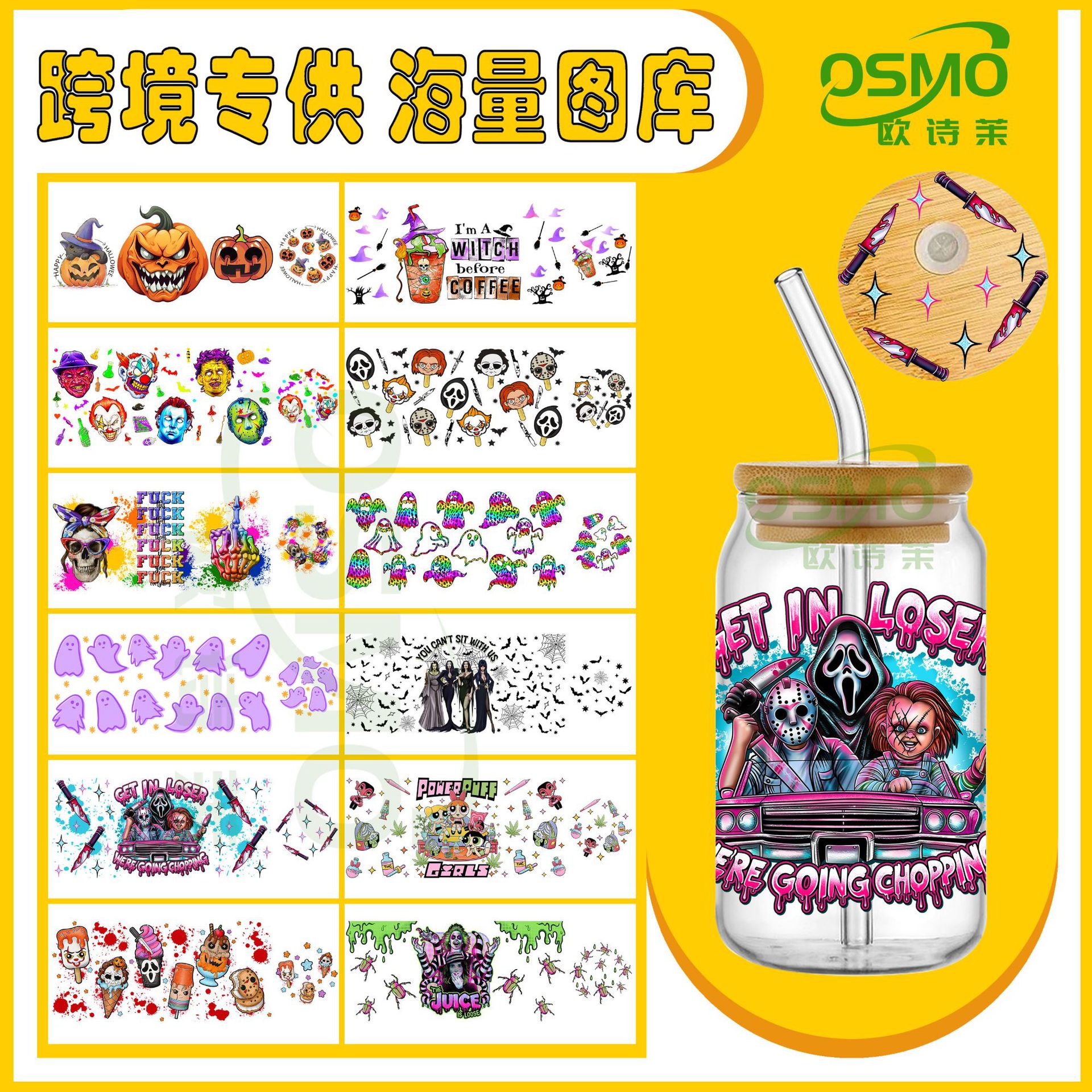 万圣节系列 UVDTF 16oz杯贴+盖贴 转印贴 水晶标 跨境10万+目录