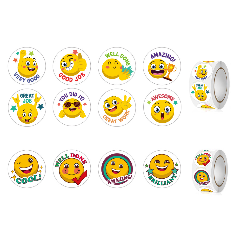 500枚/巻2.5センチパック自己粘着カラー笑顔シール奨励グラフ装飾ステッカー