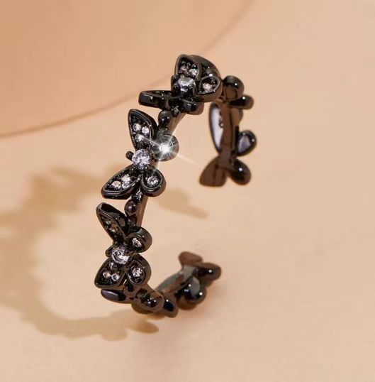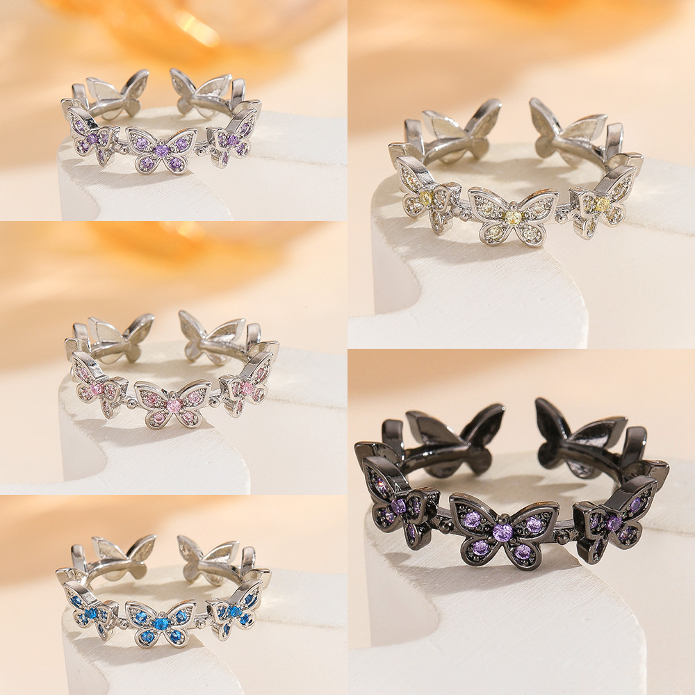 辣妹叠戴暗黑紫色锆石蝴蝶开口戒指个性小众指环女