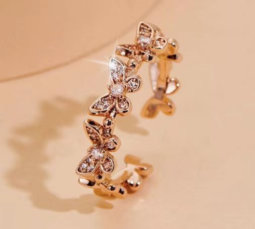 韓国版のダイヤモンドの花の口の指輪の花仙子の超仙の気質の美しいinsの潮は人差し指の指輪の輪を調節することができます。