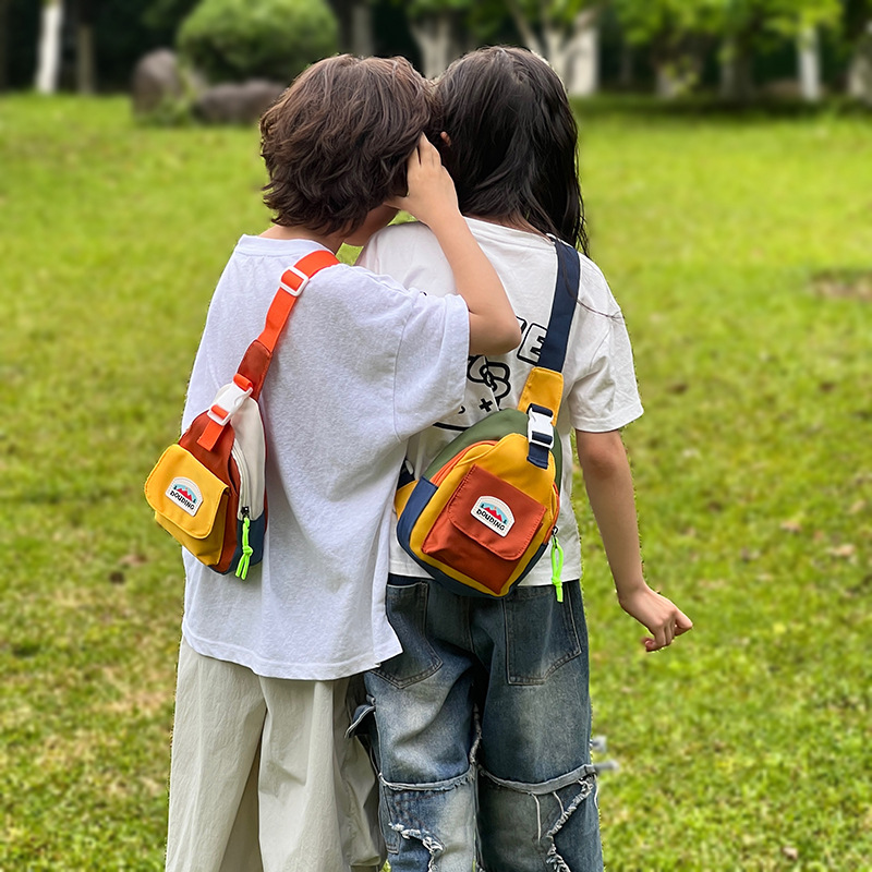 儿童斜挎包2025新款撞色百搭休闲男孩胸包运动风多巴胺撞色单肩包