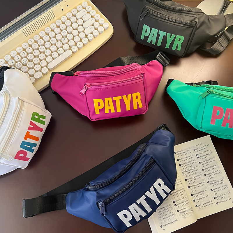 韓国版のファッションシンプルなアルファベットの子供は斜めに肩を掛けて胸の包みに合わせて流行しています。