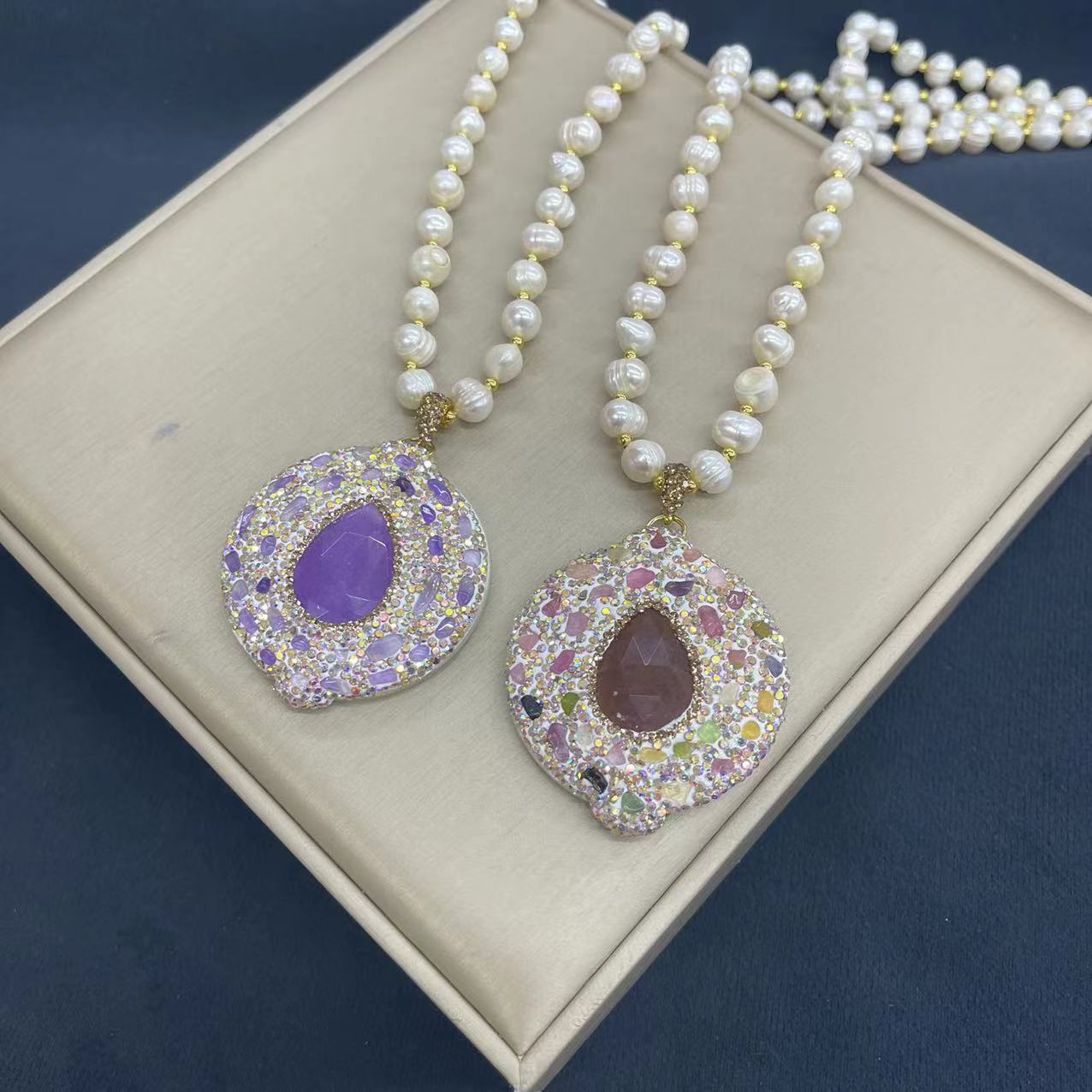 中古風四点セット天然バロック真珠ハイエンドモザイク天然玉メッキジュエリーネックレス卸売り