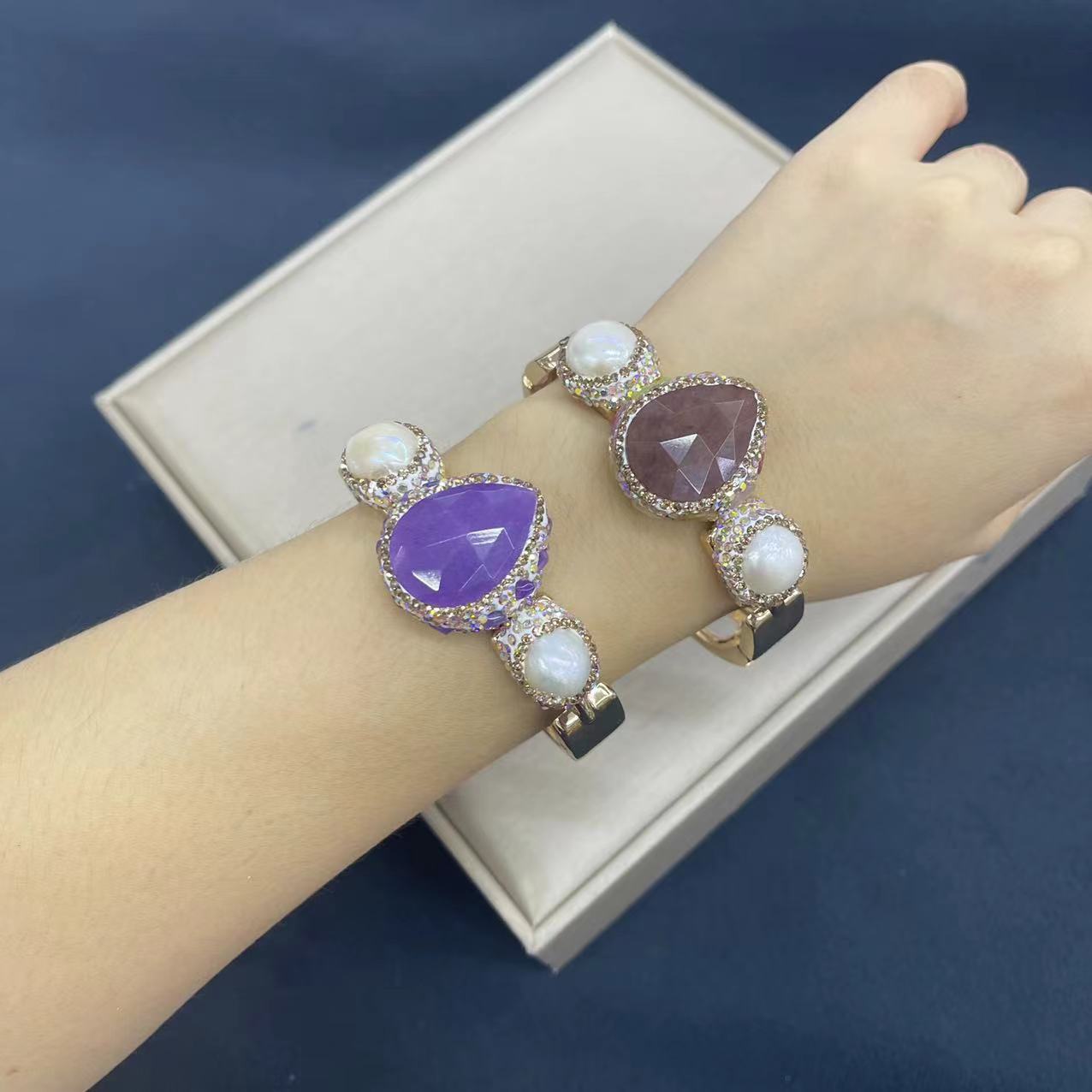 欧米の新型天然晶牙蛇皮ブレスレット指輪フランス式大衆個性ファッション高級宴会原卸売り