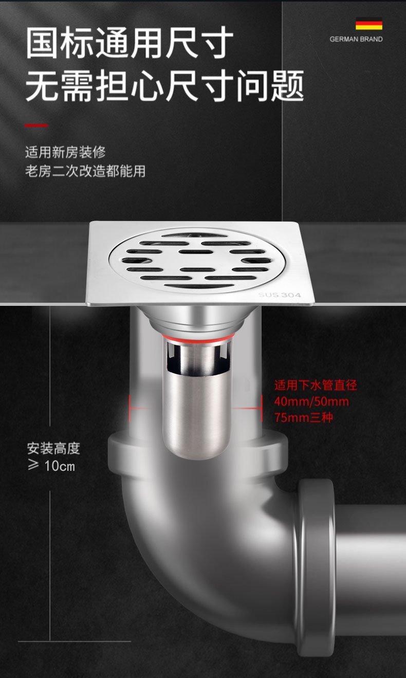 クロスボーダー temu Amazon 304 ステンレス鋼床排水管消臭コア床排水管洗濯機床排水管エンジニアリング床排水管消臭
