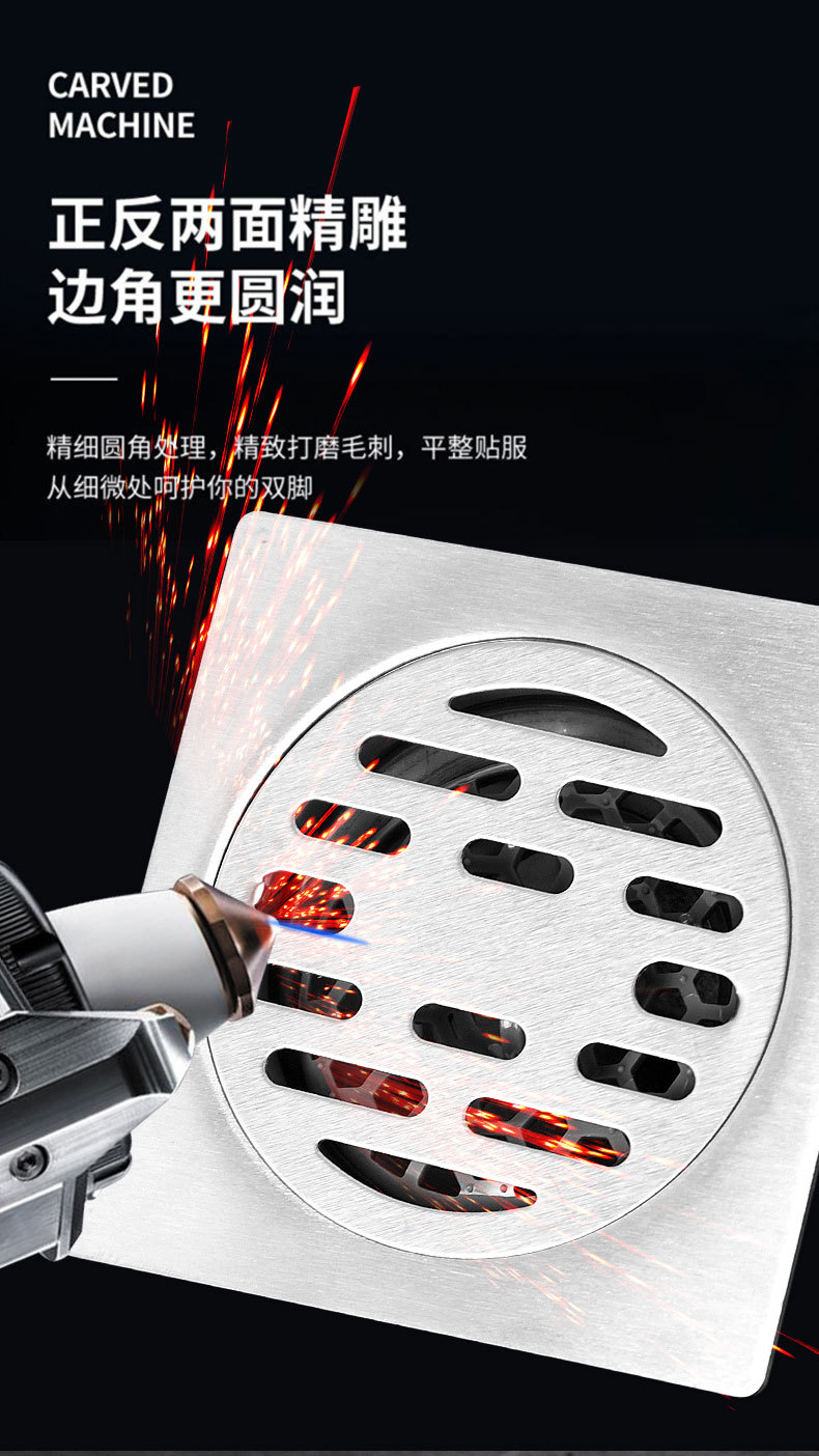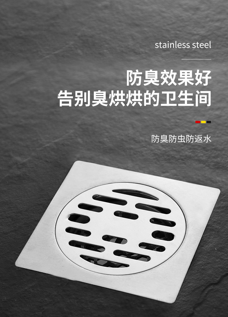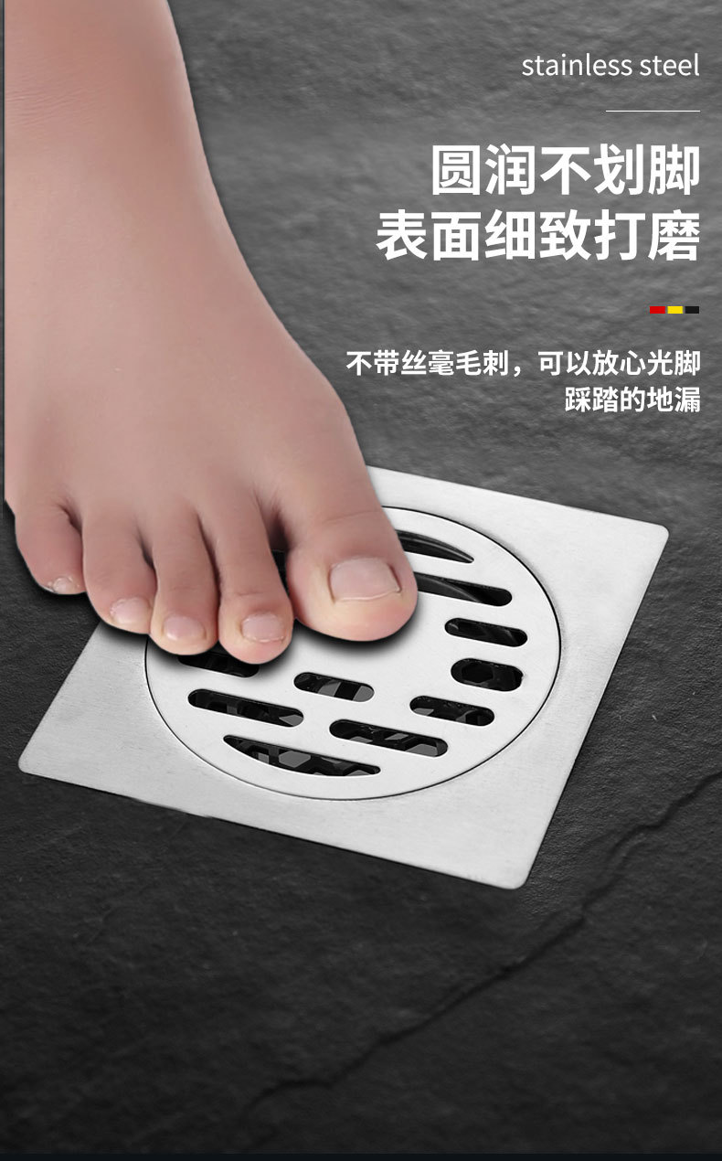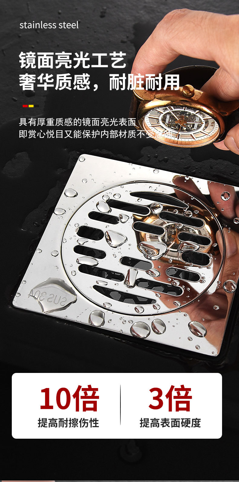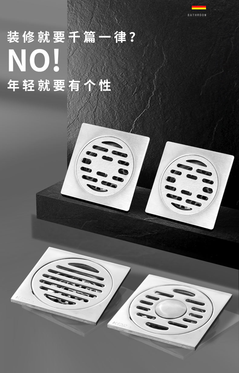 304ステンレス鋼防臭排水口、浴室、バルコニー、洗濯機排水口、正方形工事排水口