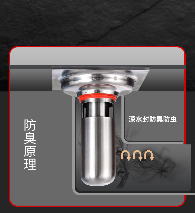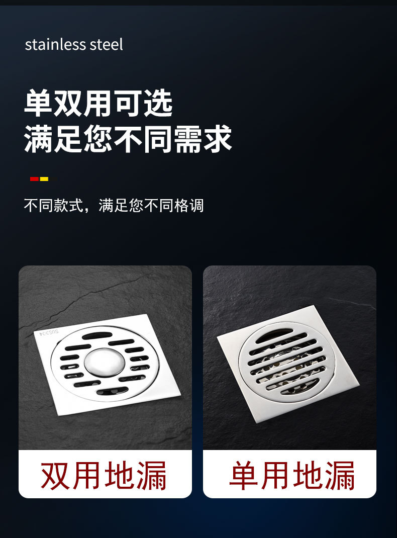 ステンレス鋼クロスボーダーゴム消臭床排水バスルーム浴室防水掃除口乾湿両用床排水