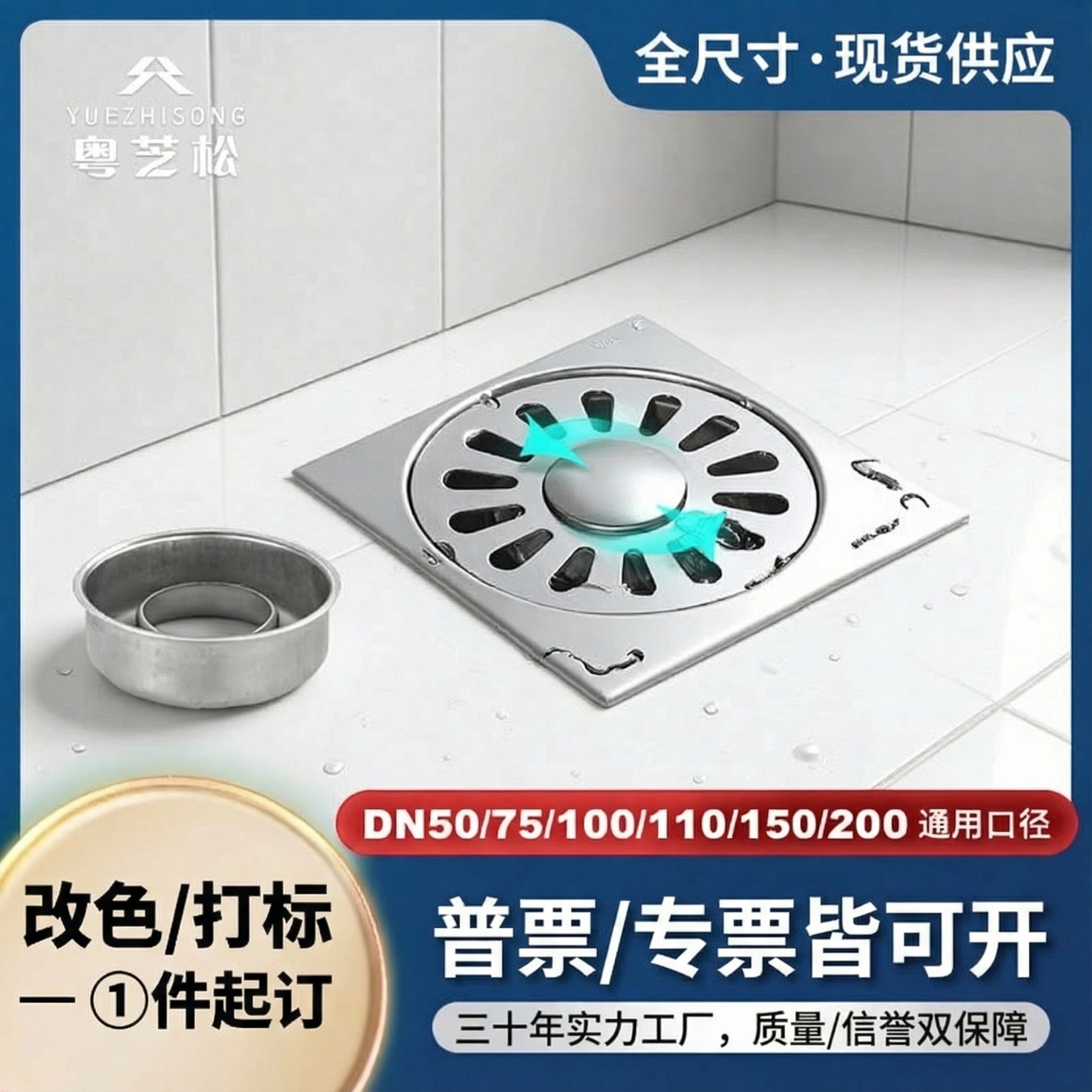 粤芝松現代シンプル304ステンレス水封防臭洗濯機トイレ浅水封地漏れ