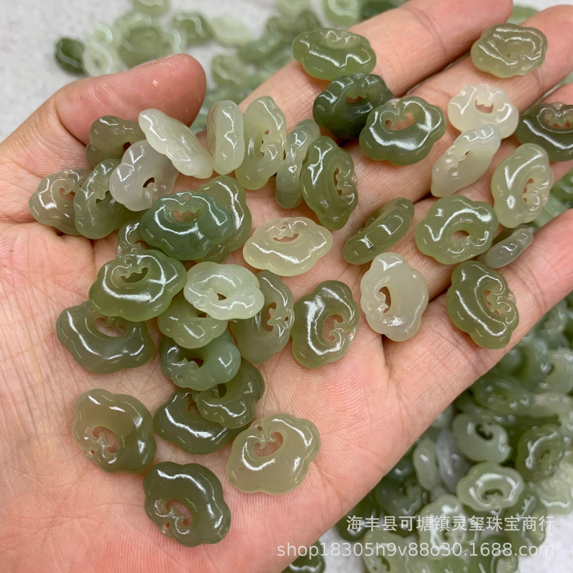 和田玉青海省の材料福ブランドの部品は穴diyの手のチェーンのペンダントを通して生放送の商品の卸売り工場を飾ります。