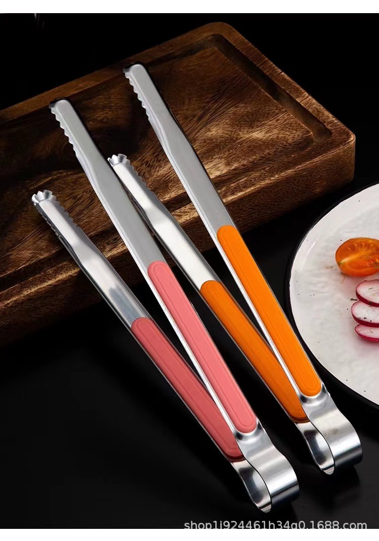 韓国ステンレス鋼 25.5 センチメートル食品クリップバーベキュークリップ韓国マルチカラーオプションクリッププラスチックハンドルバーベキュークリップビュッフェクリップ