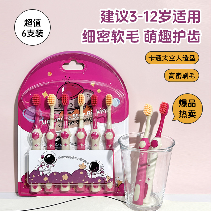 抖音ガール子供用歯ブラシ6本セット6-12歳漫画宇宙飛行士ベビー歯磨き粉ファミリー用ソフト卸売