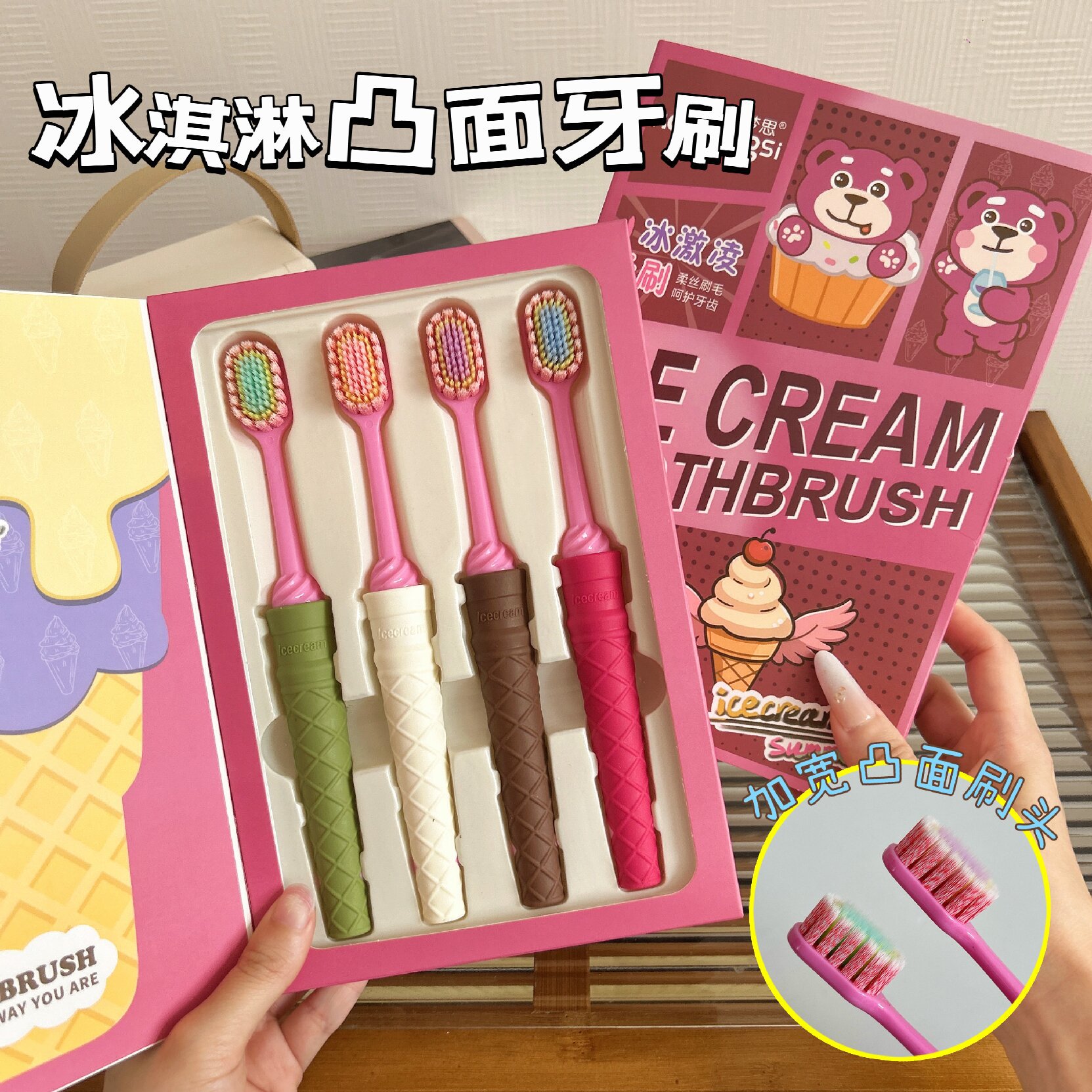 4支礼盒装冰淇淋宽头凸面成人软毛牙刷护龈洁齿家用情侣小头清洁