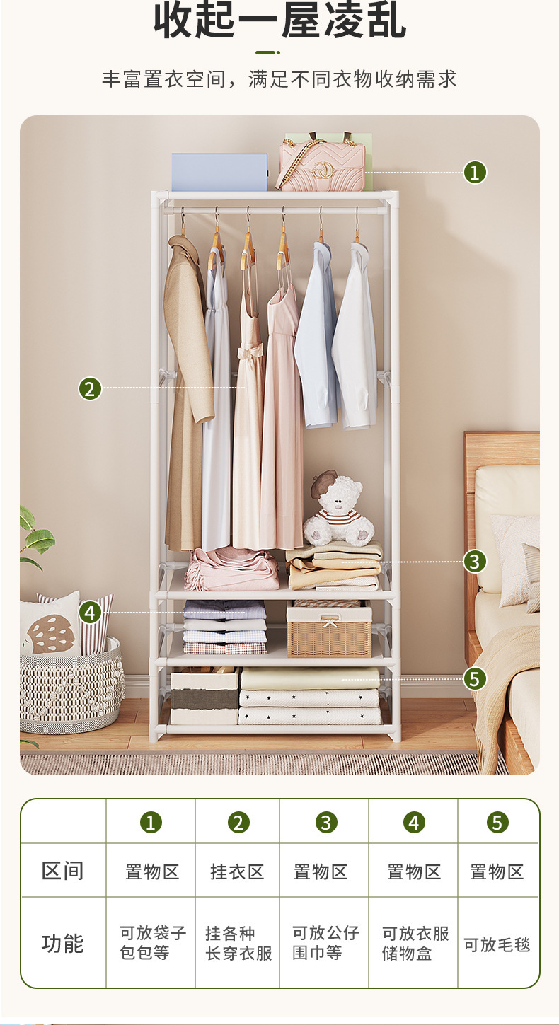 衣類簡易収納棚箪笥賃貸簡易組立収納物多層衣類収納棚多機能収納棚
