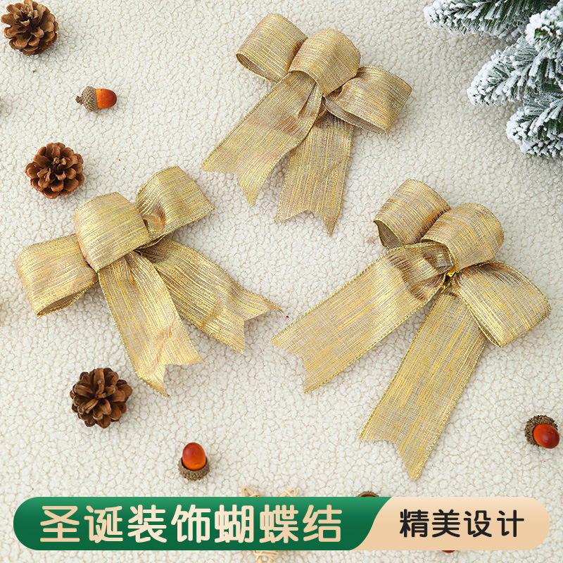 クリスマスの金色の蝶結びはクリスマスツリーを飾ります。