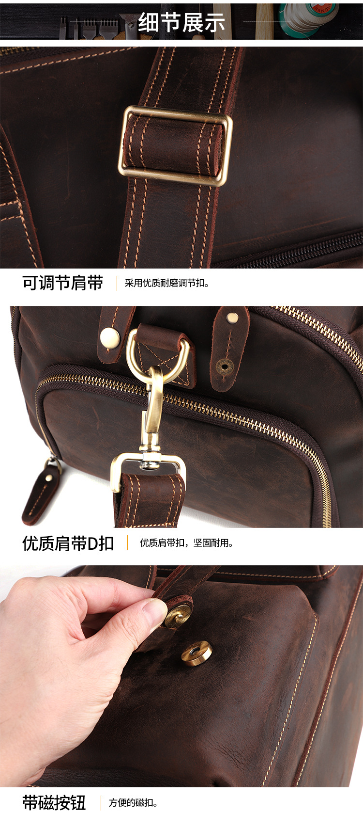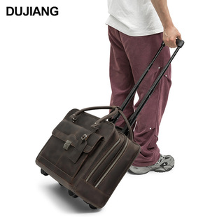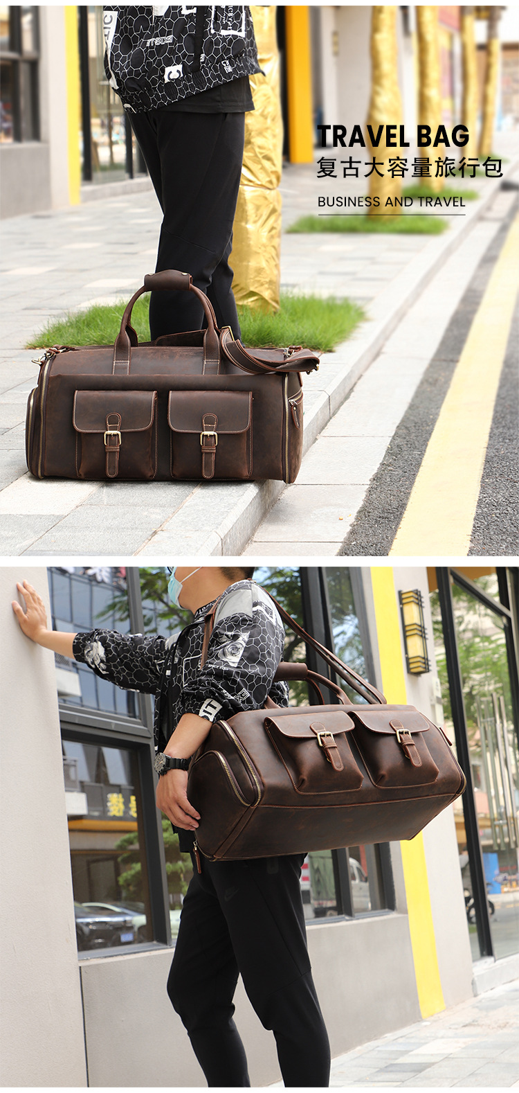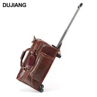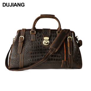 DUJIANG新型本革旅行バッグ大容量斜め掛けフィットネスバッグレトロ短期出張旅行カバン男