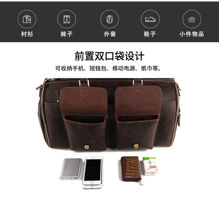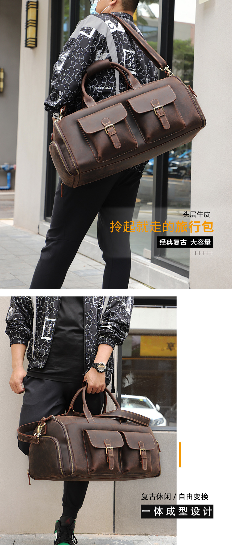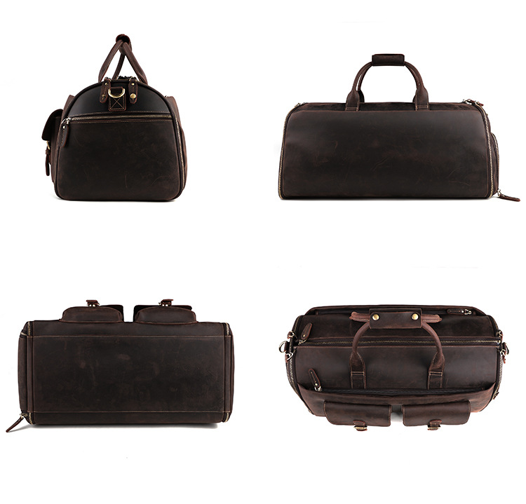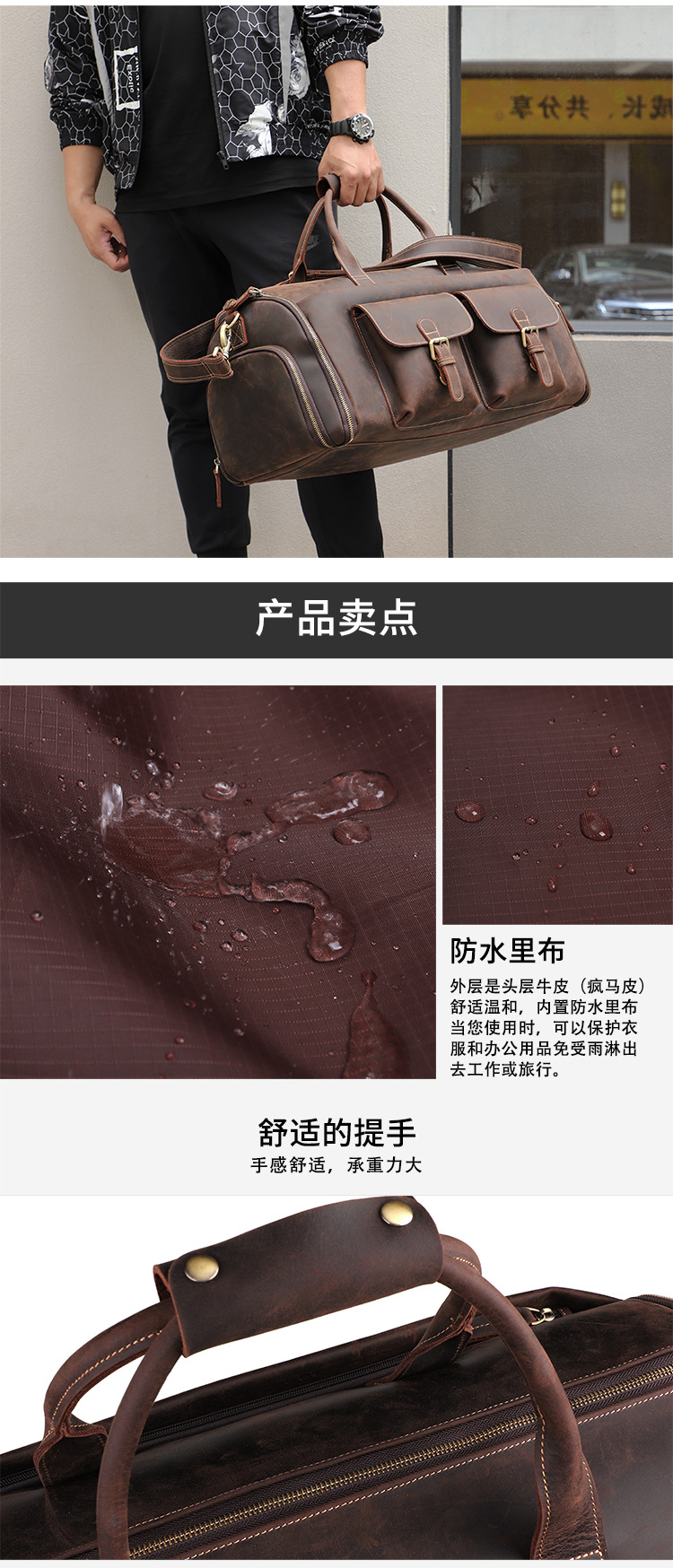 狂馬皮レトロ旅行バッグトップ層牛革大容量多機能乾湿分離スーツ旅行ハンドバッグ