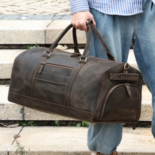 旅行バッグ狂馬ベルト靴倉庫フィットネスバッグ短期出張本革レトロ手提げ片肩斜め掛け荷物バッグ男