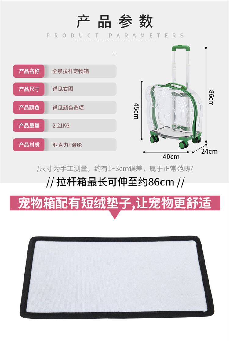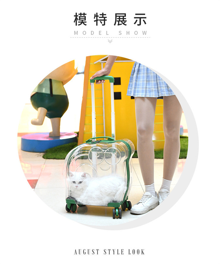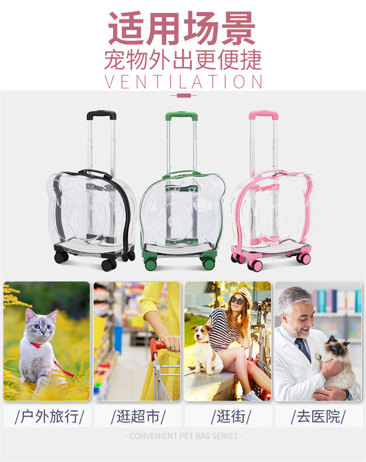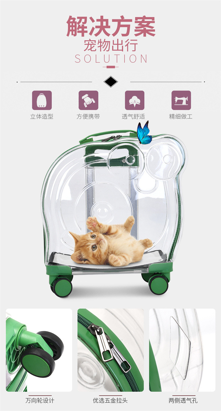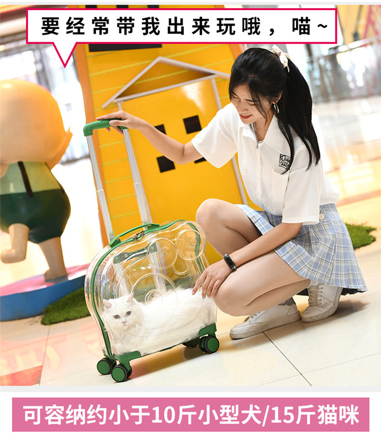 現物新型ペットトロリー箱携帯全透明ペット箱通気宇宙猫バッグ外出ポール箱卸売り