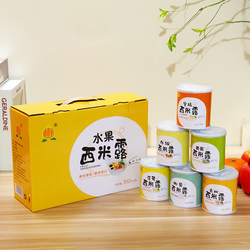 ギフトボックスの新鮮なヨーグルトの西米露の果物の缶詰の6缶の箱の箱の箱の中で多味の黄色の桃の什錦のパイナップルのみかんを混ぜます。