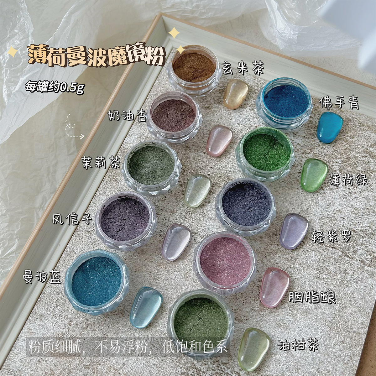 ネイルアクセサリーミントマンボシリーズ低飽和粉質繊細魔鏡粉少女感超フラッシュ鏡小麦粉フラッシュ粉