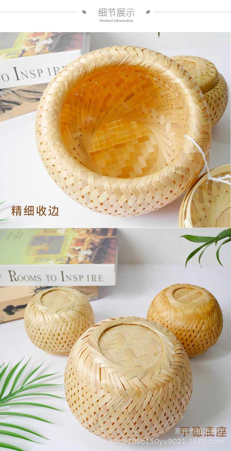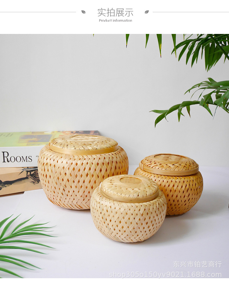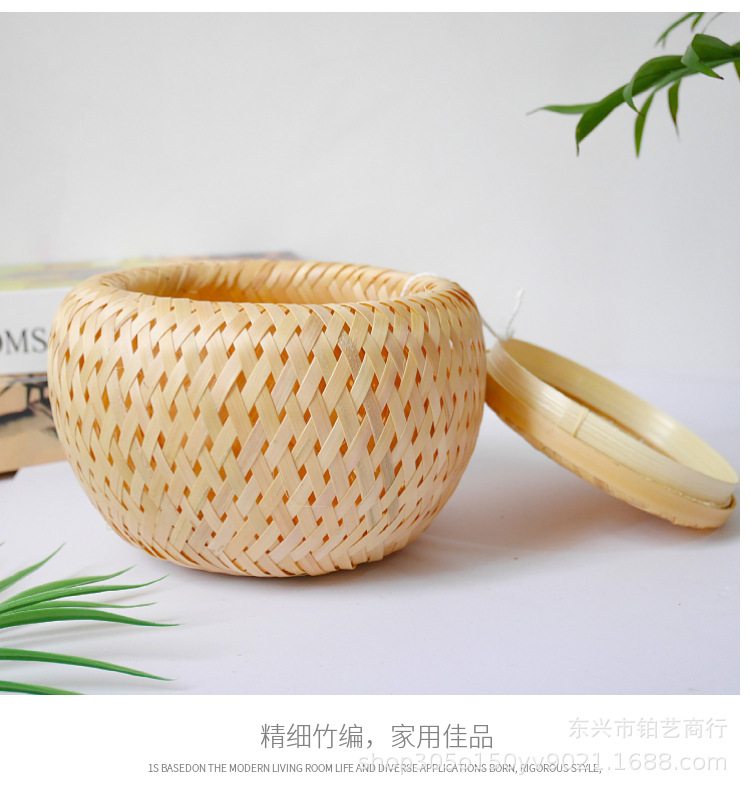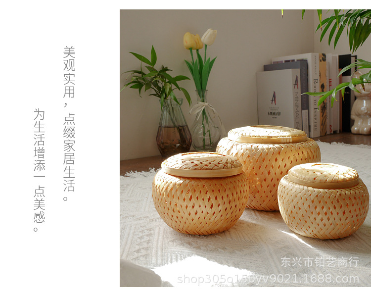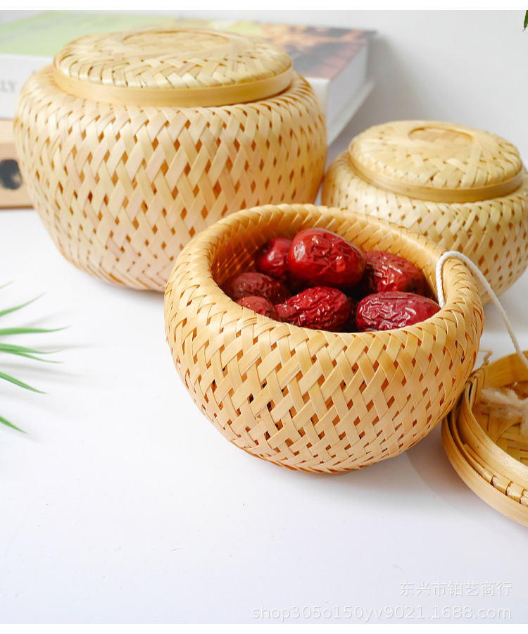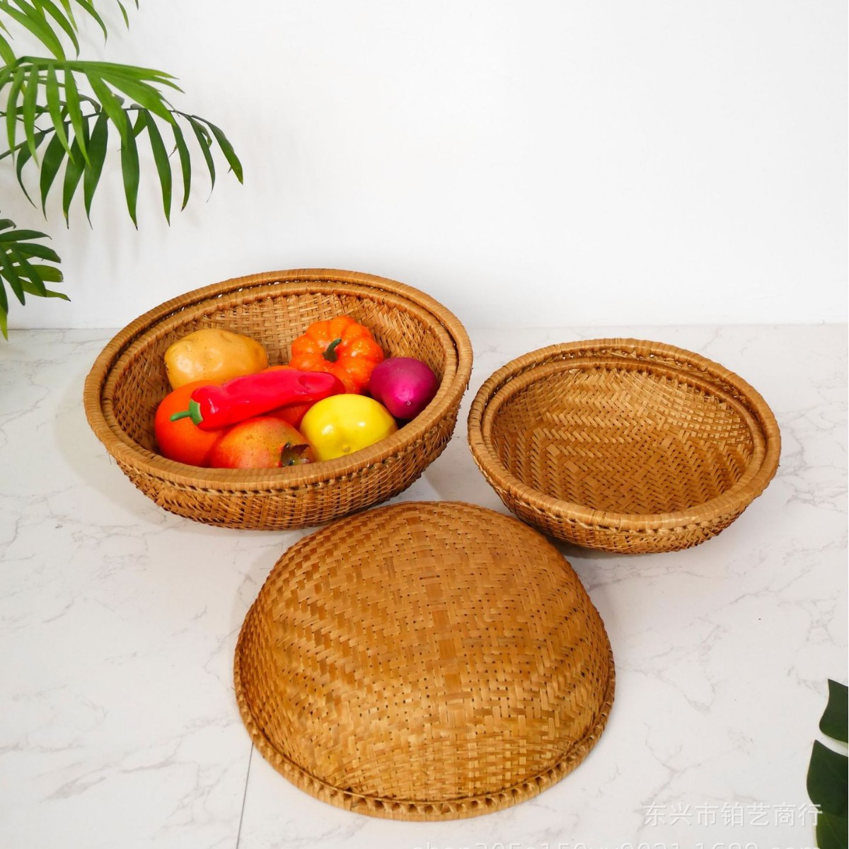 白金芸竹製品手作り竹編みかごドライフルーツ箱家庭用デスクトップ中国式レトロ竹かごスナック果物かご