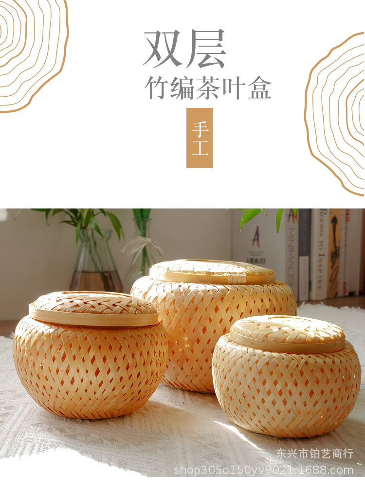 竹編み茶葉缶竹製トランペット茶葉箱竹ざるベトナム二層竹缶プーアル茶箱ギフトボックス