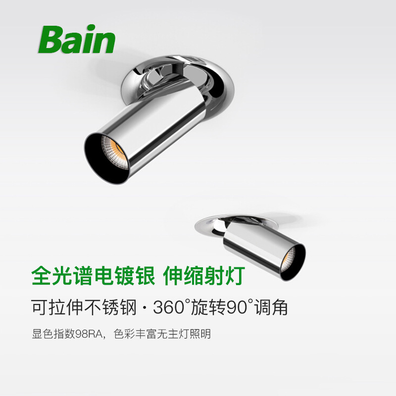 包豪斯嵌入式射灯可调角度折叠伸缩电镀银客厅照画不锈钢拉伸射灯