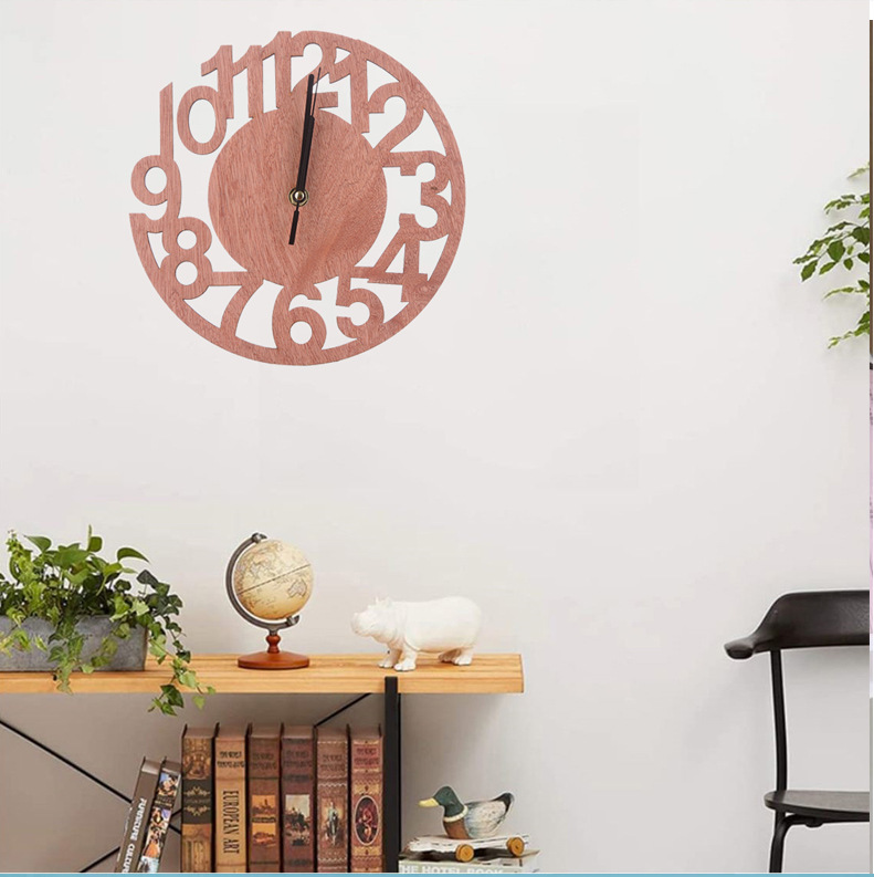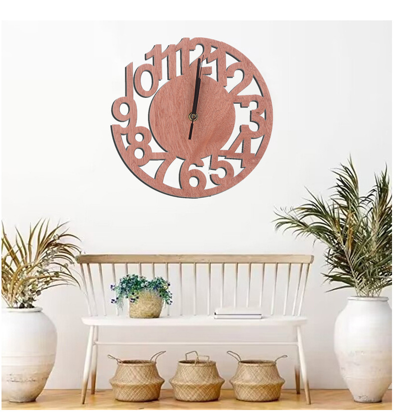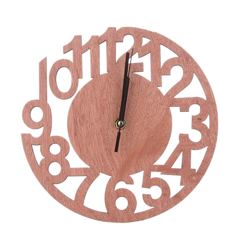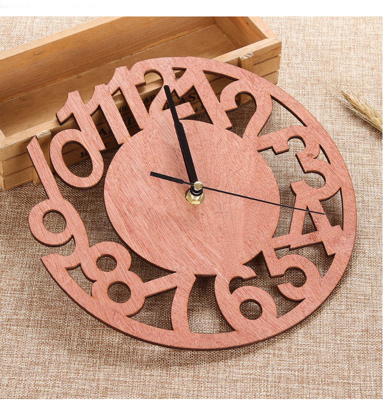 新型円形デジタル創意木製創意彫刻樹形掛け時計寝室壁用シンプル木製掛け時計