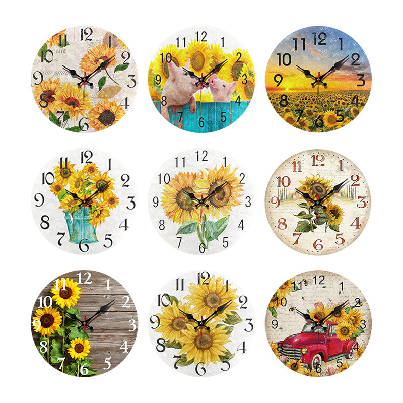 クロスボーダー人気ひまわりテーマ掛け時計クリエイティブ北欧静音時計メーカー直販ひまわり飾り時計