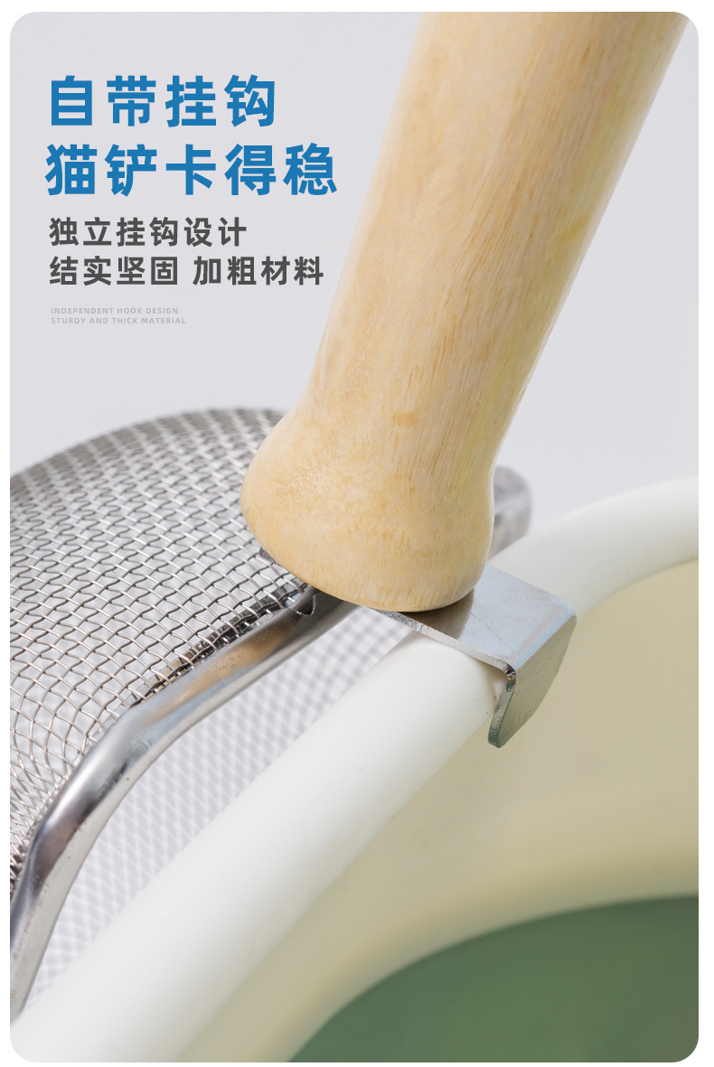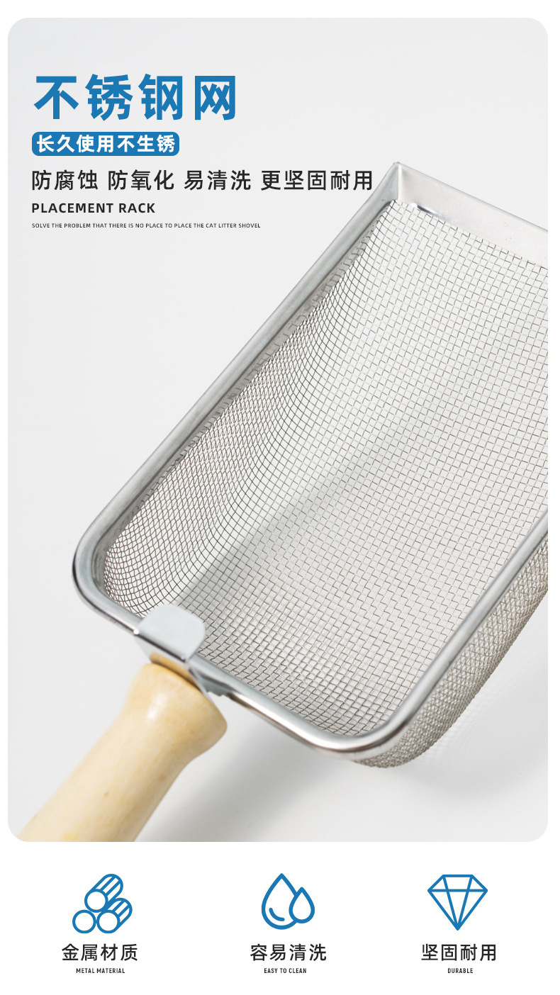 不锈钢猫砂铲细孔铲子加厚长柄网铲二合一猫砂专用铲宠物铲屎神器