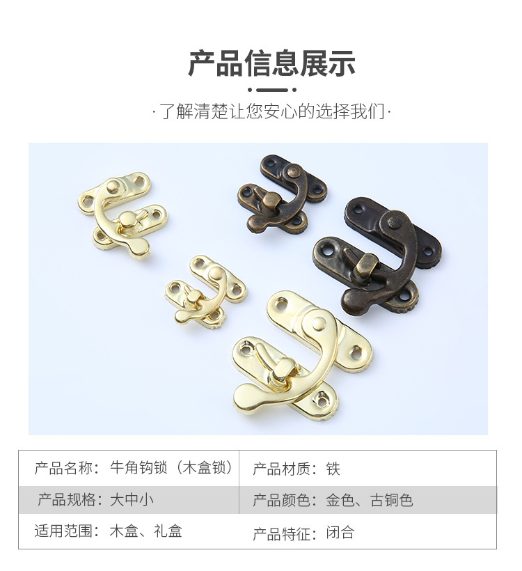 かばん留め具鉄製牛角フック留め木箱ロック包装箱曲げフック留め礼箱バックル装飾フックロック