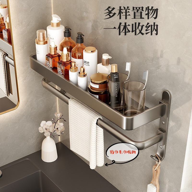 浴室穴なし収納棚トイレ壁掛けタオル掛けトイレアルミ合金バスタオル掛けセット収納棚