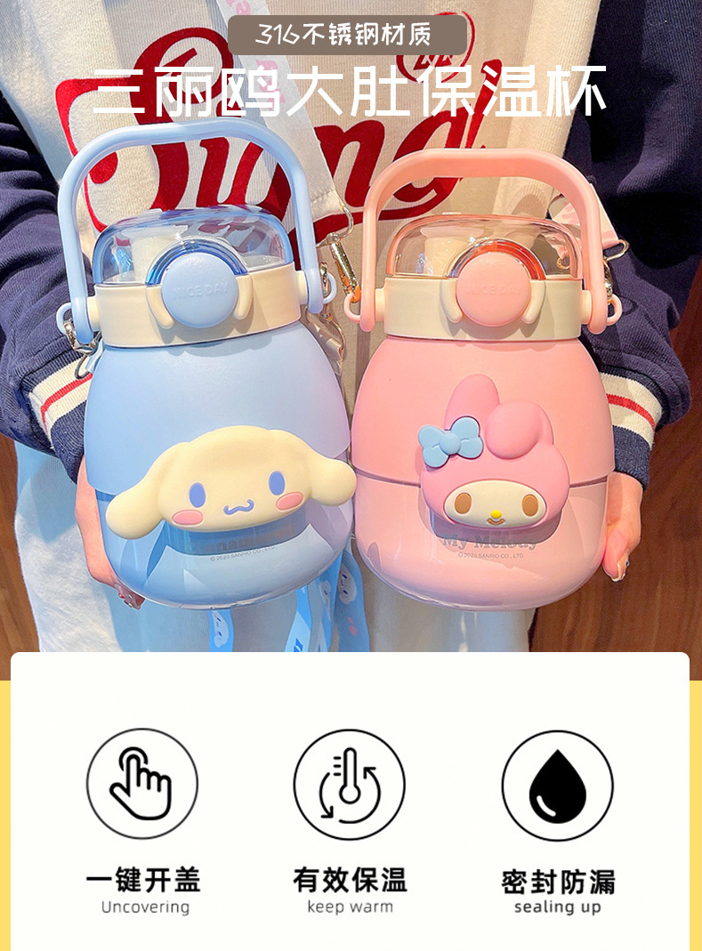 サンリオ大容量保温カップ個性可愛い高颜値女子カップ大カップ便利なストラップカップ